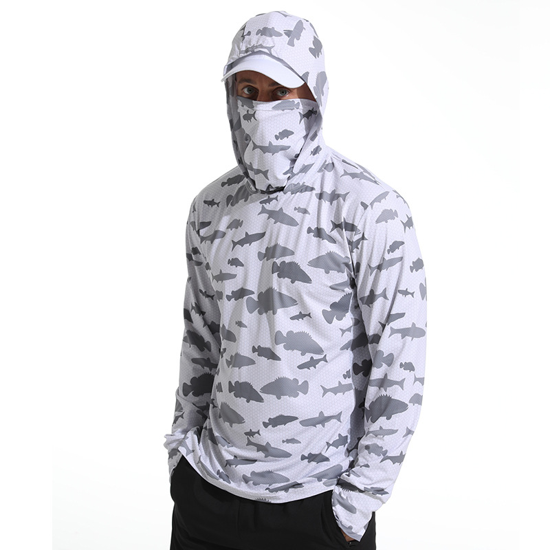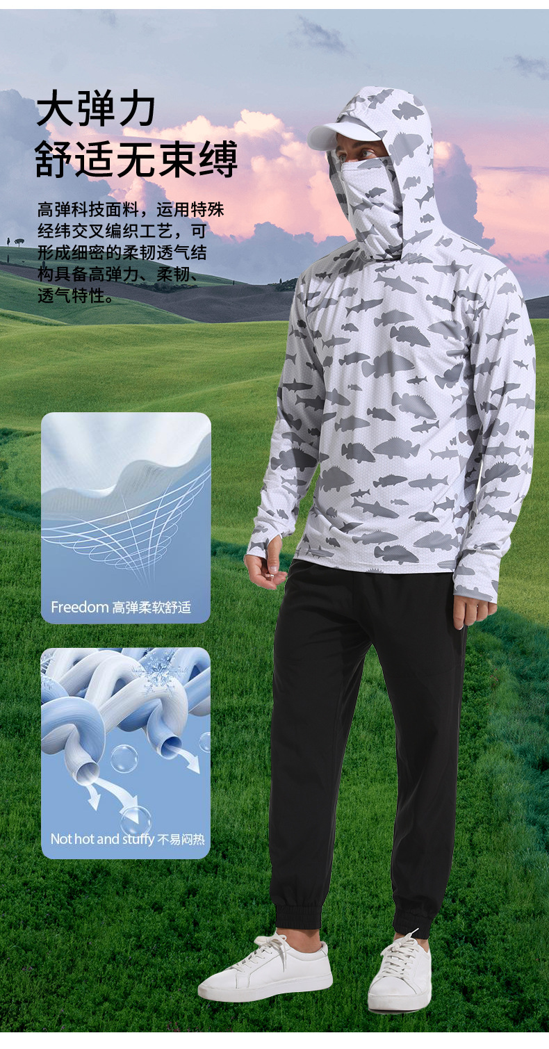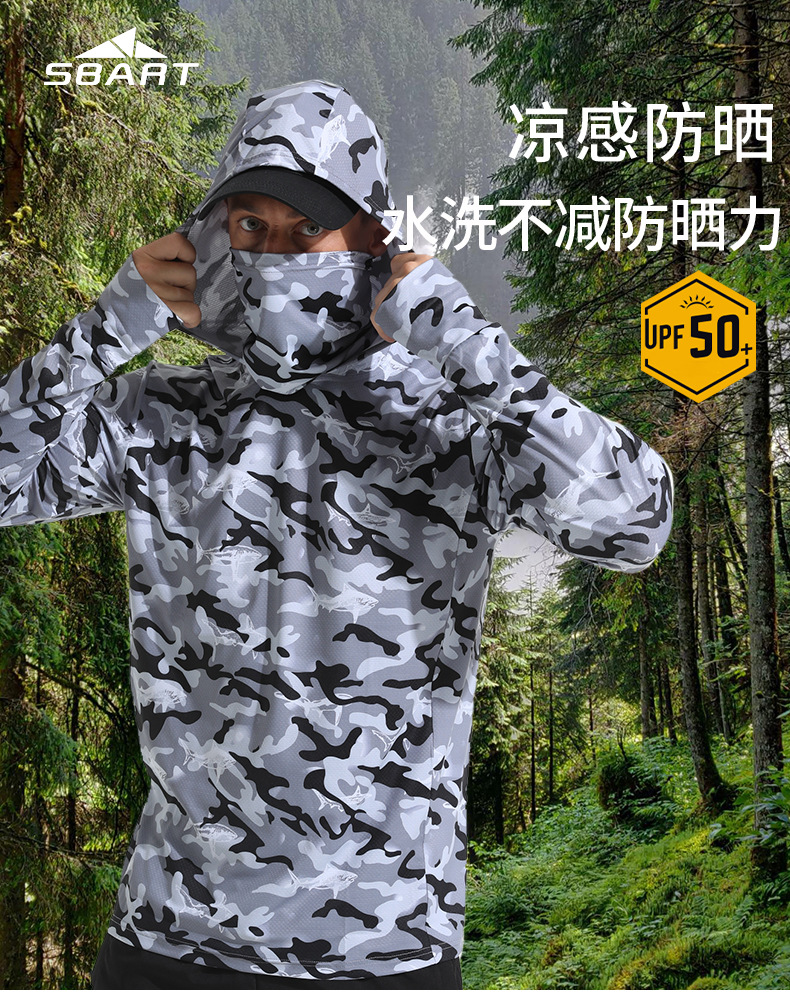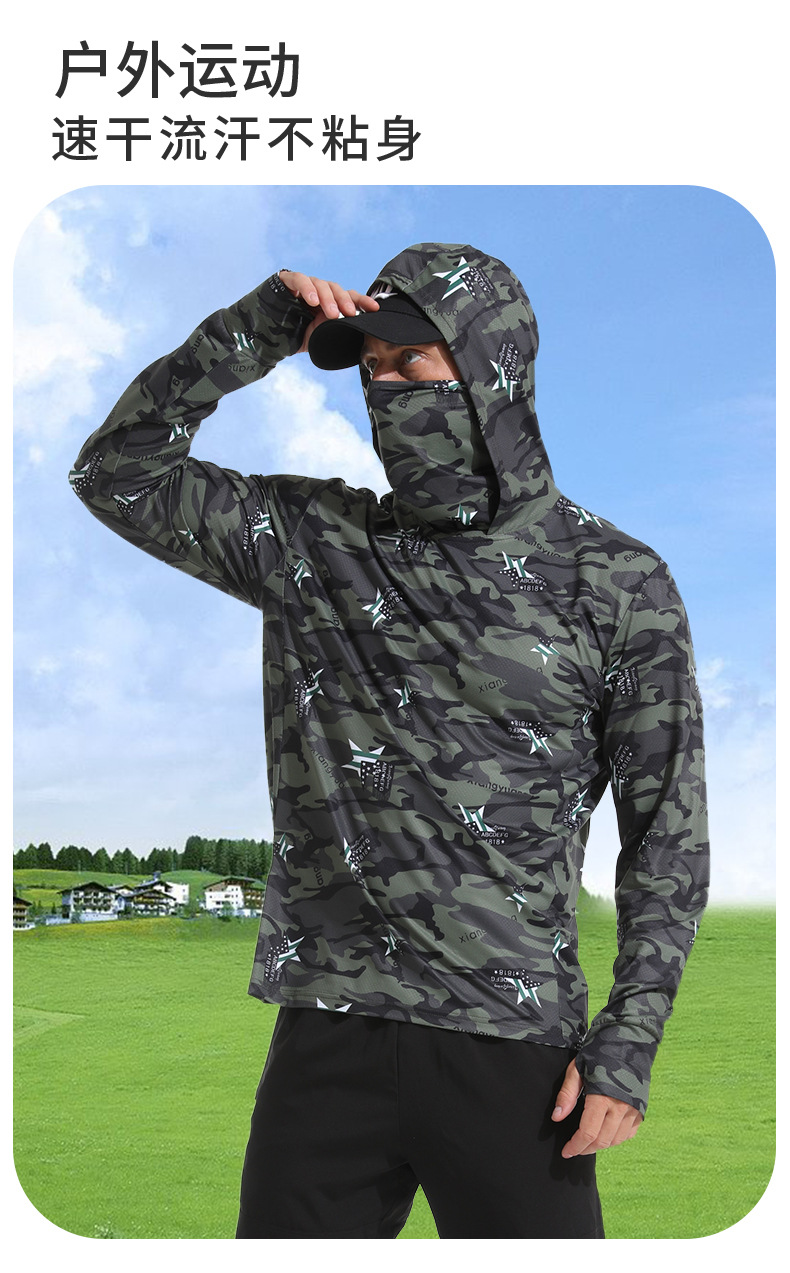 아마존 야외 태양 보호 의류 UPF50 + 아이스 실크 태양 보호 의류 낚시 의류 가벼운 속건 후드 긴 소매 티셔츠