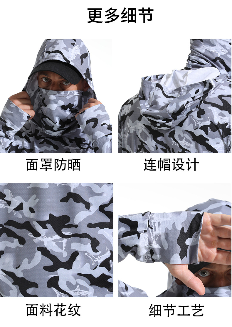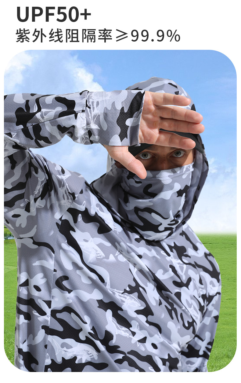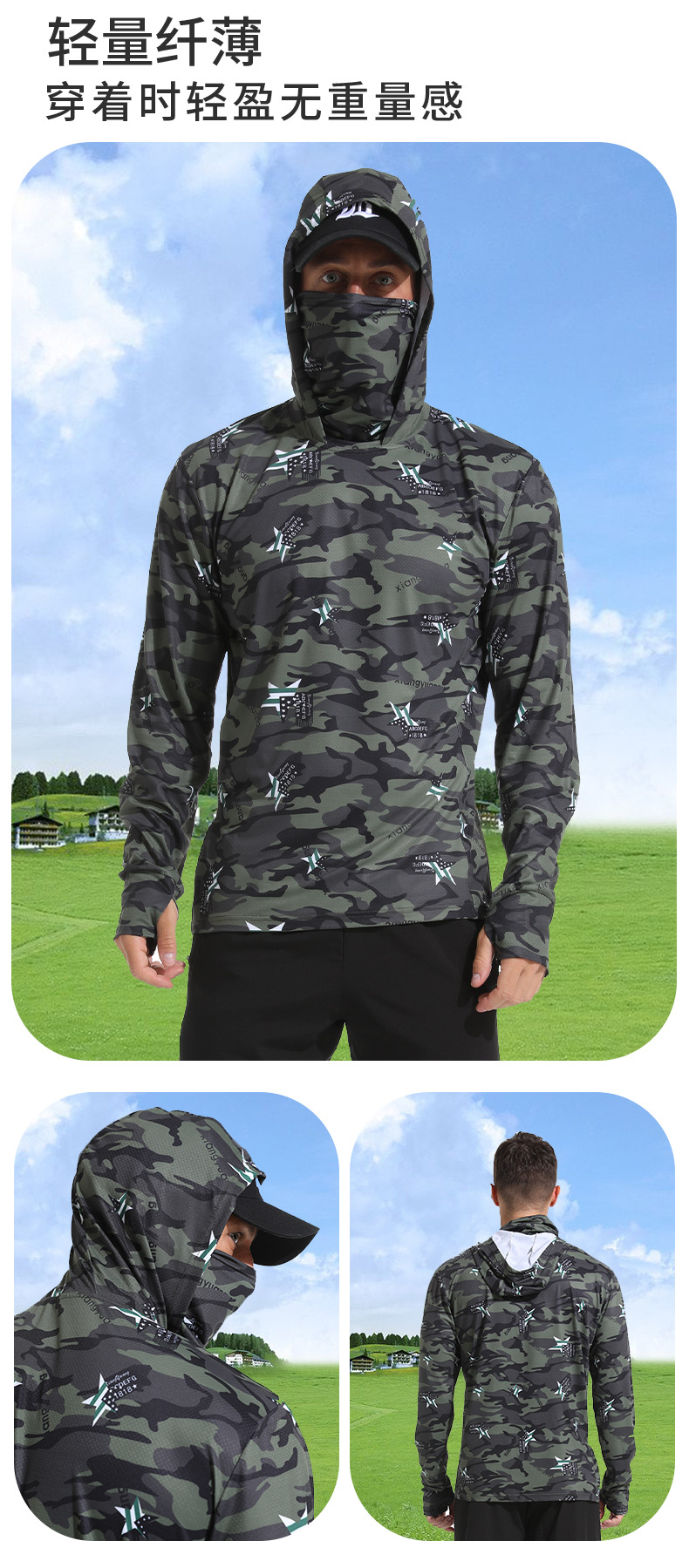 아마존 야외 태양 보호 의류 UPF50 + 아이스 실크 태양 보호 의류 낚시 의류 가벼운 속건 후드 긴 소매 티셔츠스토어 가기