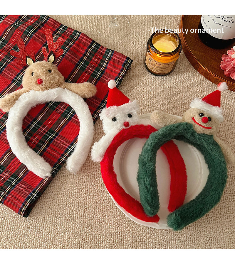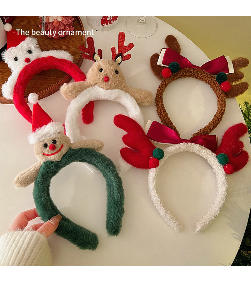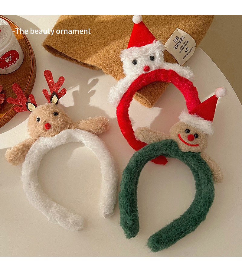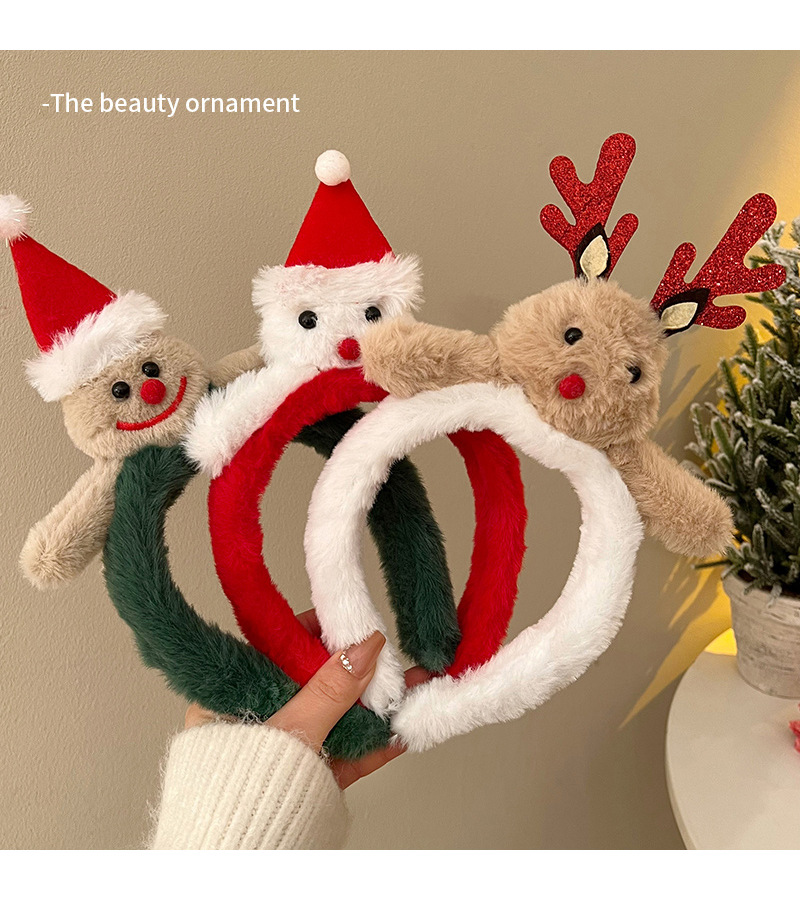 귀여운 플러시 엘크 머리띠 여성용 크리스마스 머리핀 높은 두개골 뿔 머리띠 진저브레드맨 가을 겨울 세안 머리핀