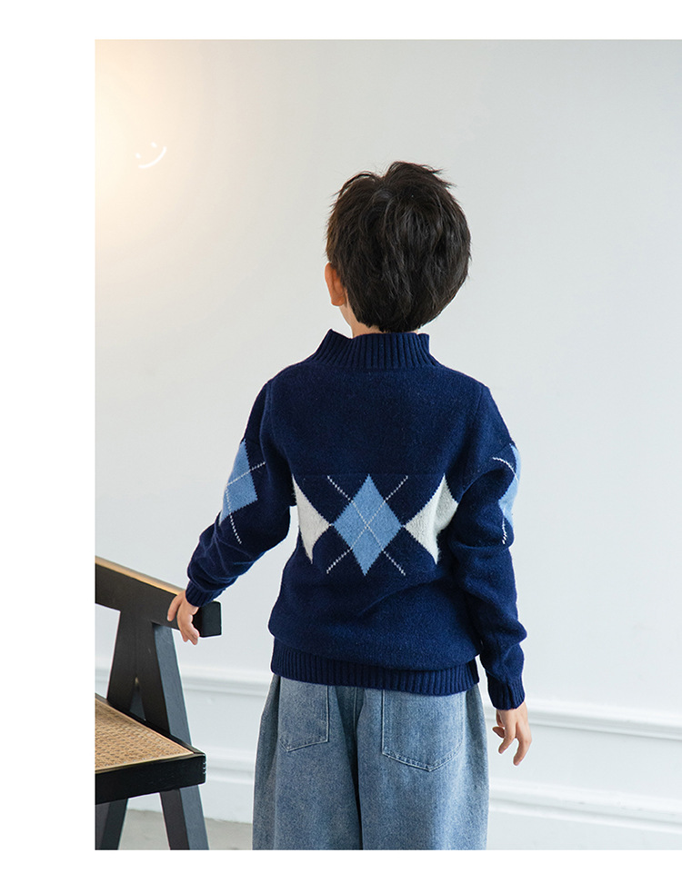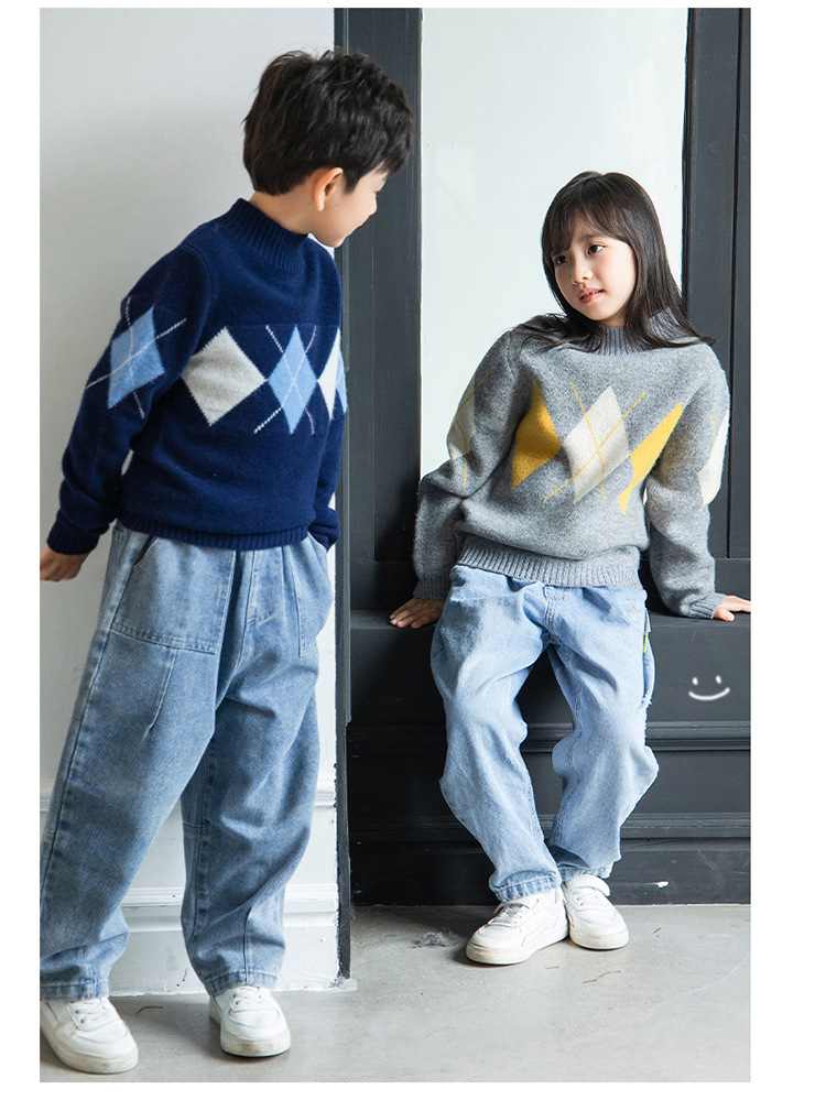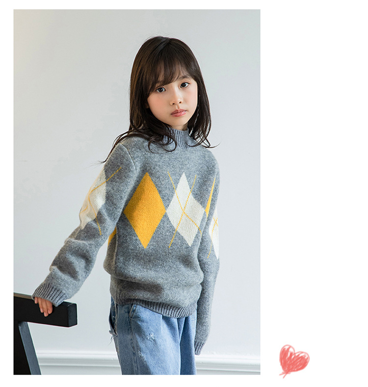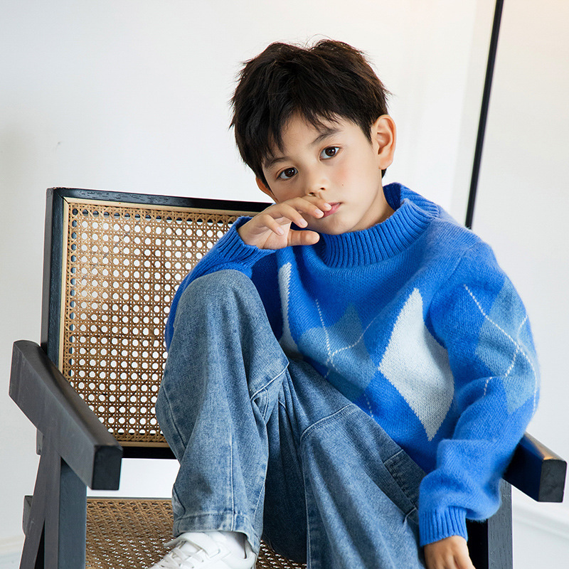 하프 터틀넥 아동용 퓨어 울 스웨터 가을과 겨울 색상 차단 니트 풀오버 스웨터 남아 소녀 캐시미어 베이스 셔츠스토어 가기