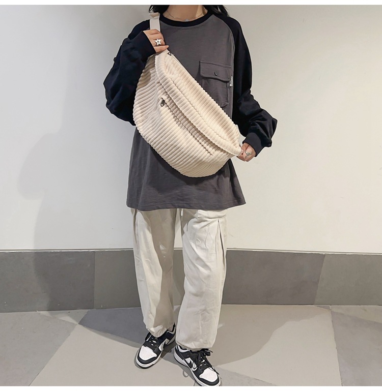 코듀로이 백 여성 대용량 2023 새로운 가을 겨울 올매치 심플 체스트 백 경량 숄더백 사이클링 백 트렌디스토어 가기