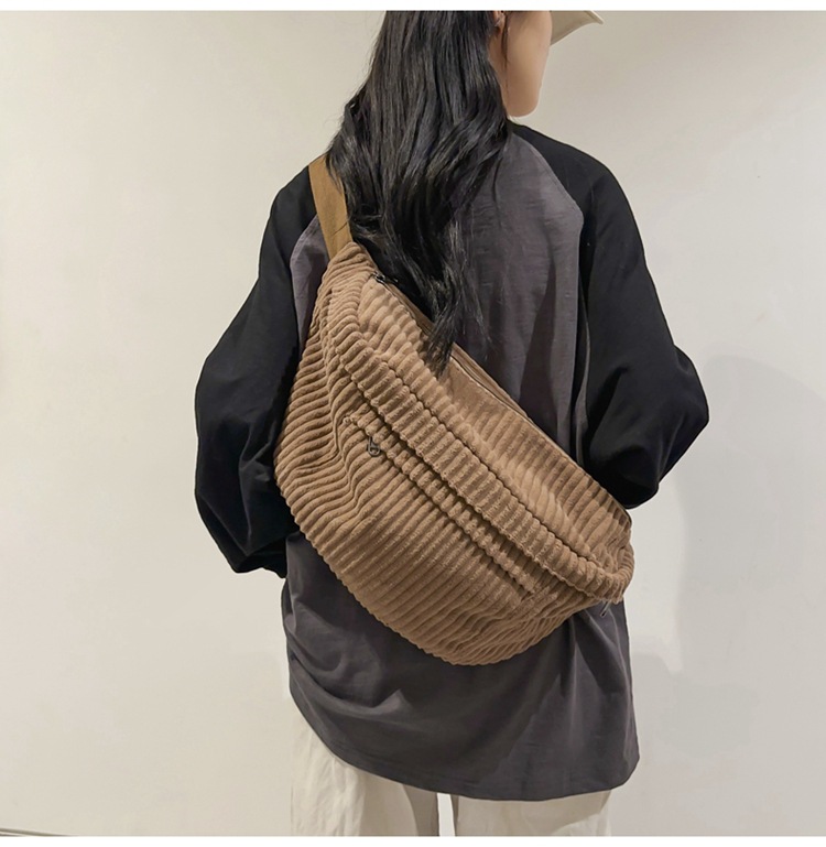 코듀로이 백 여성 대용량 2023 새로운 가을 겨울 올매치 심플 체스트 백 경량 숄더백 사이클링 백 트렌디