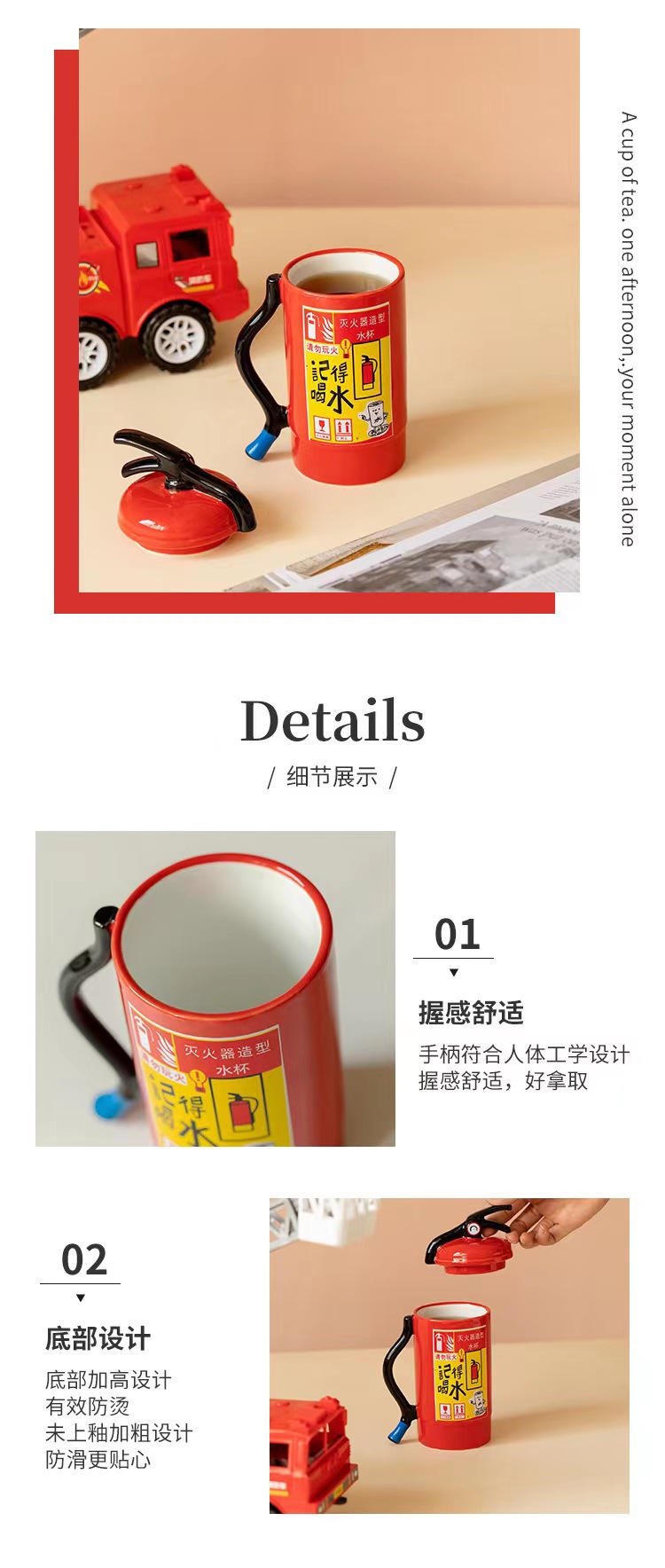 핸드 컬러 세라믹 컵 소화기 모델링 물 컵 선물 크리에이티브 워터 컵 이상한 오리지널 불 머그스토어 가기