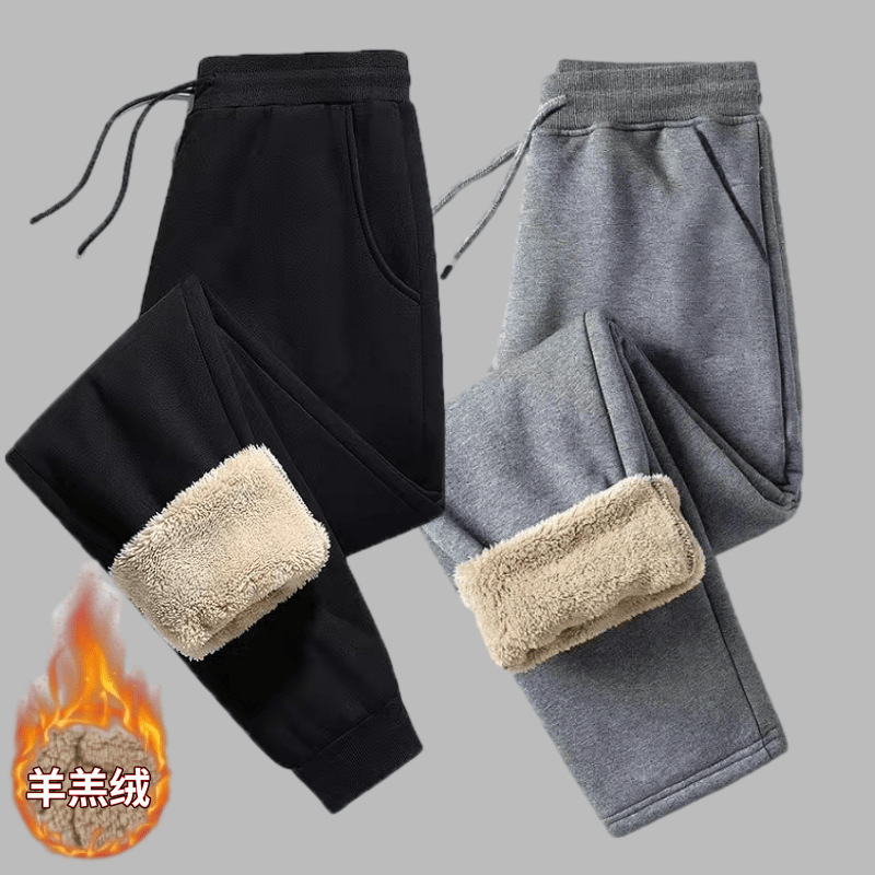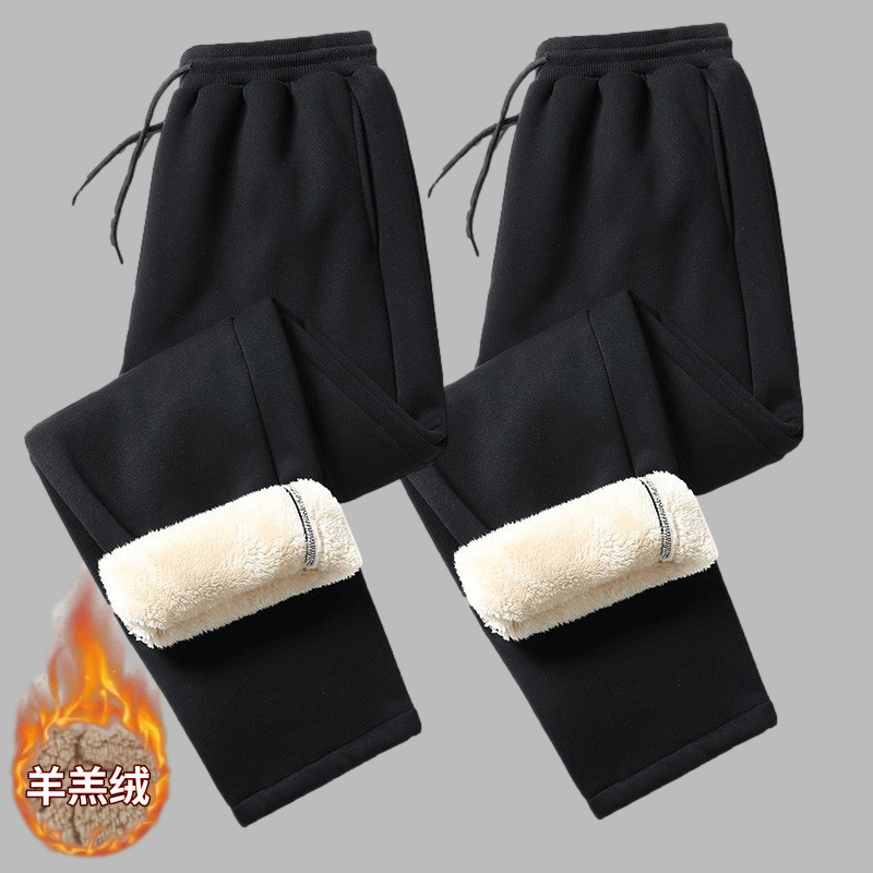 캐주얼 바지 2023 새로운 겨울 양고기 양털 느슨한 스트레이트 남자 스포츠 바지스토어 가기