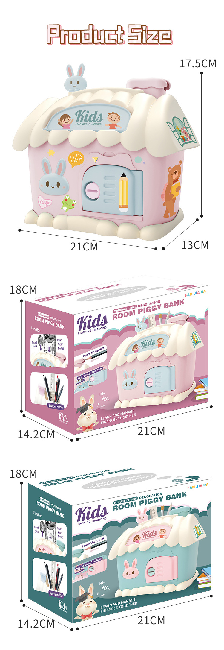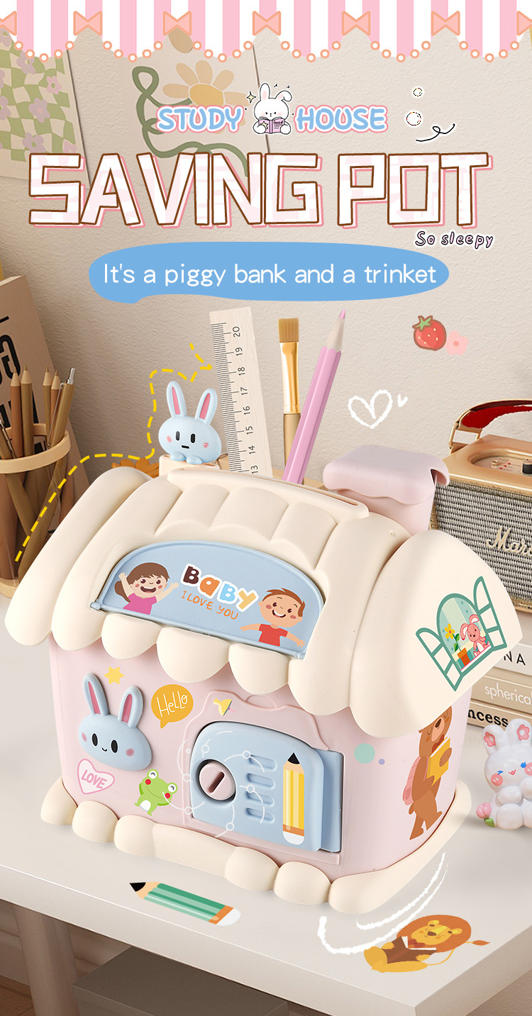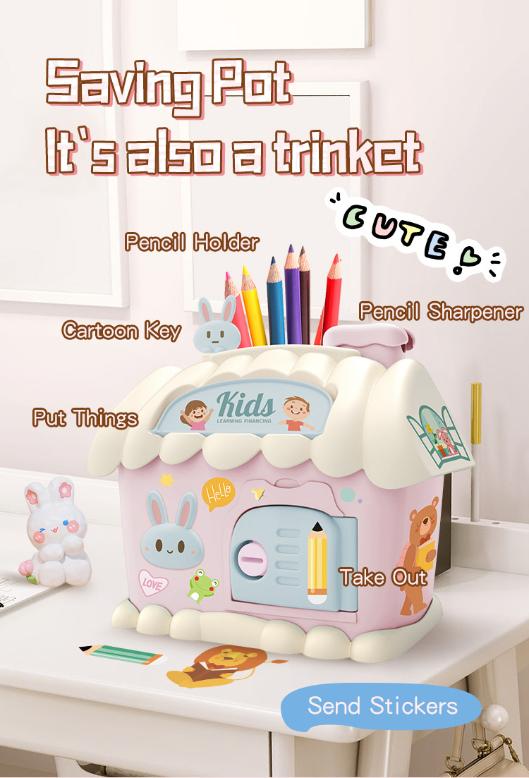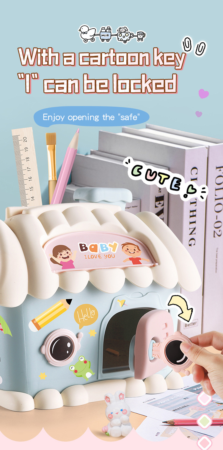 크로스 보더 레인보우 하우스 귀여운 돈 보관 집 키 펜 홀더 보관 연필 칼 DIY 보관 통합 돼지 저금통