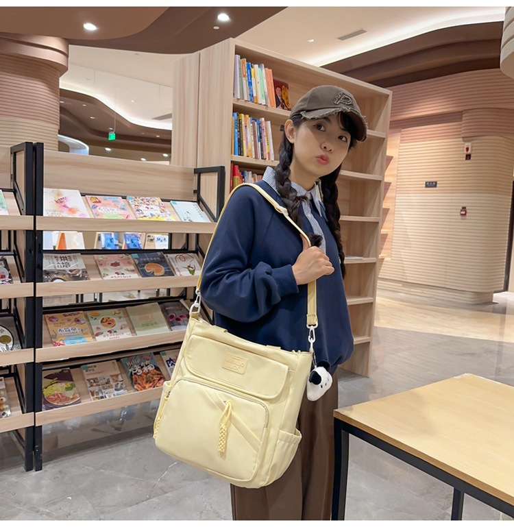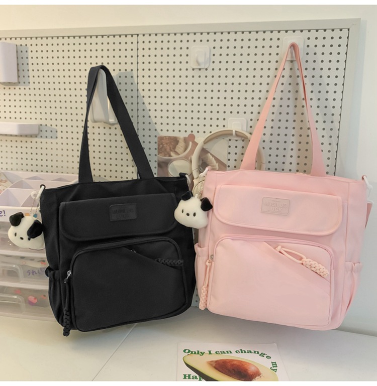 심플 올 매치 대용량 숄더백 소프트 소녀 학생 클래스 백 단색 크로스바디 백 통근 토트백 핸드백