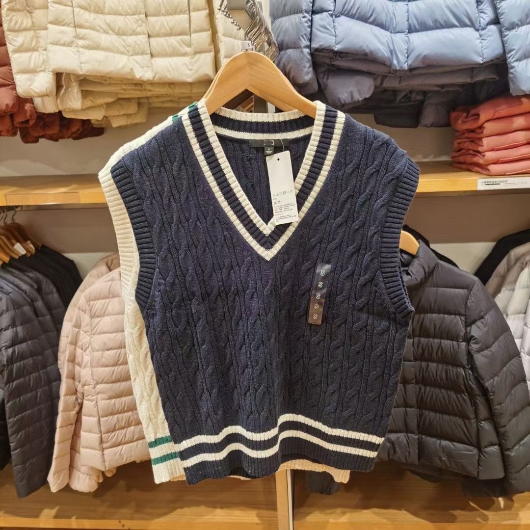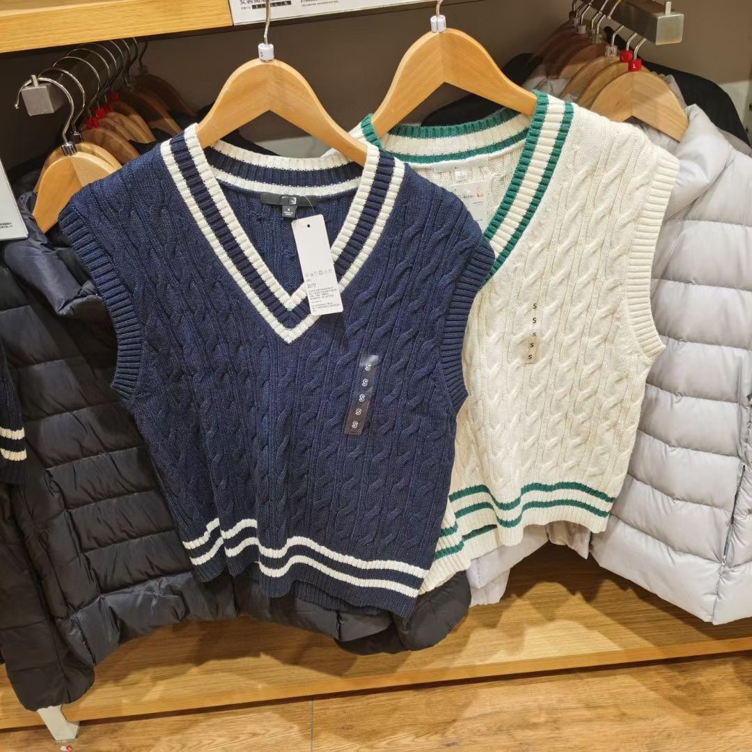 일본 싱글 2023 봄 대학 스타일 남성과 여성 커플 스타일 버튼 꽃 V 넥 니트 조끼 조끼 457474