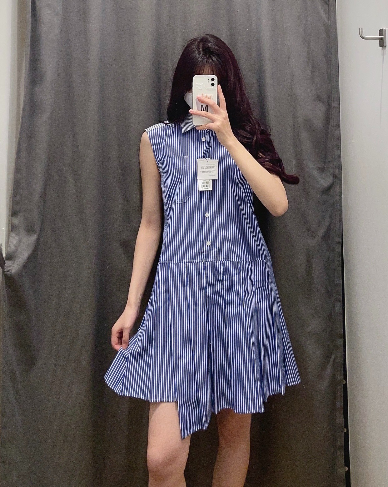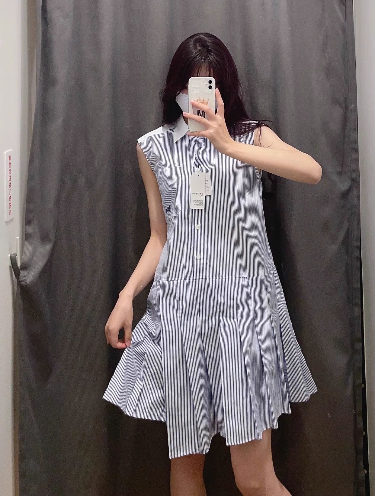 2023 여름 디자이너 협력 스트라이프 스티치 셔츠 민소매 원피스 458618 세대스토어 가기