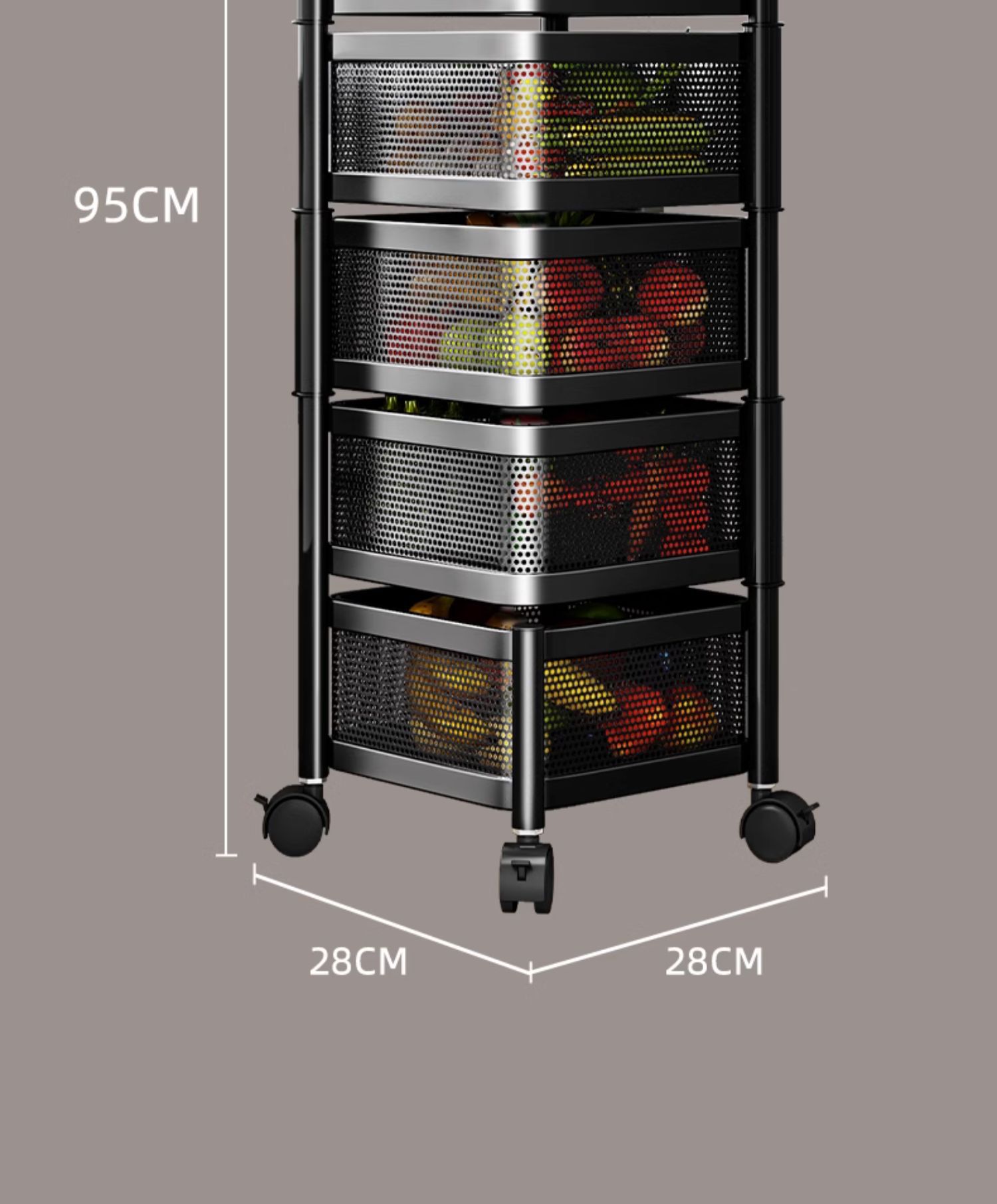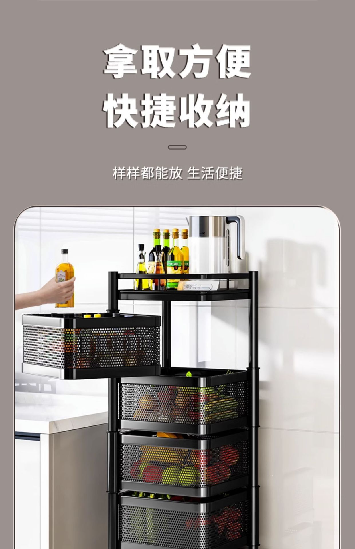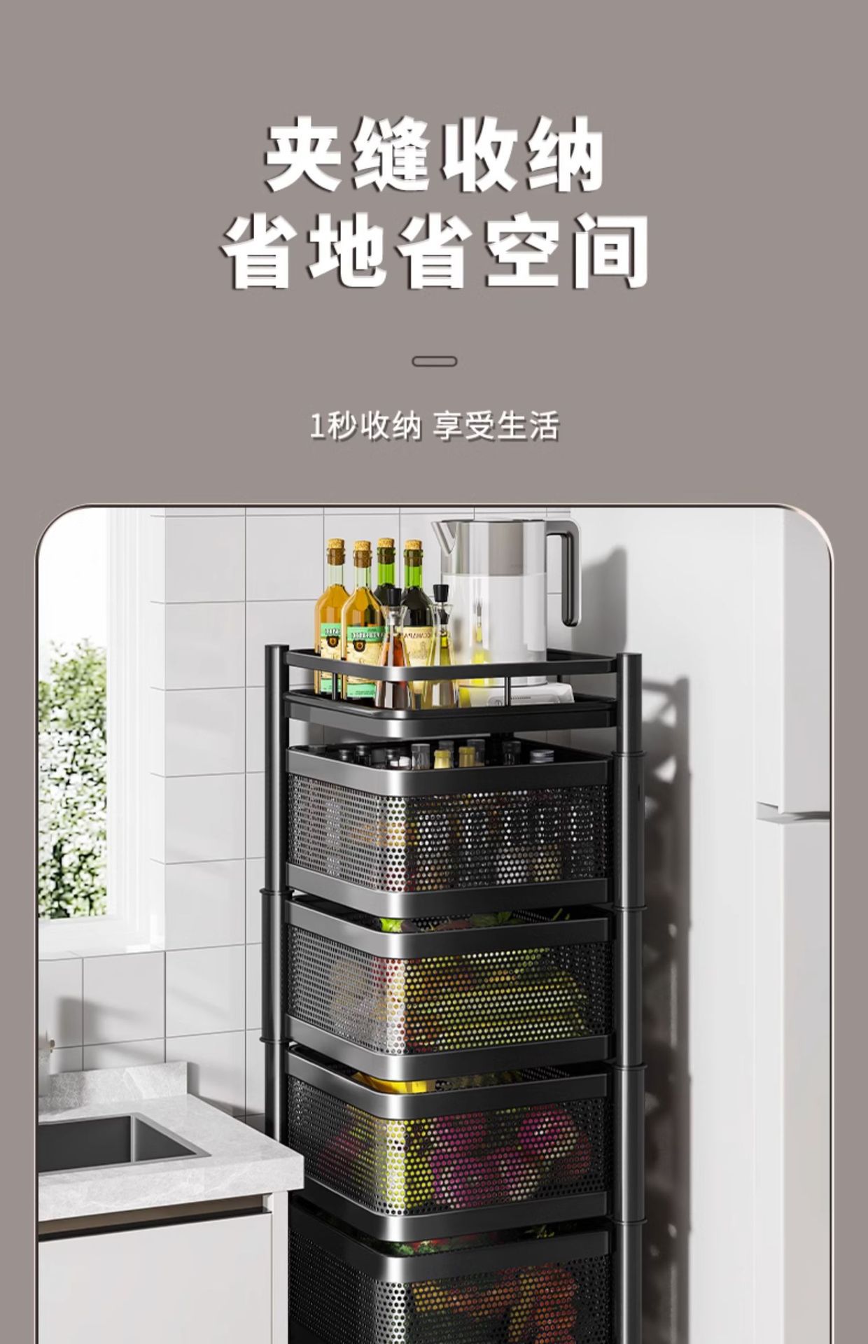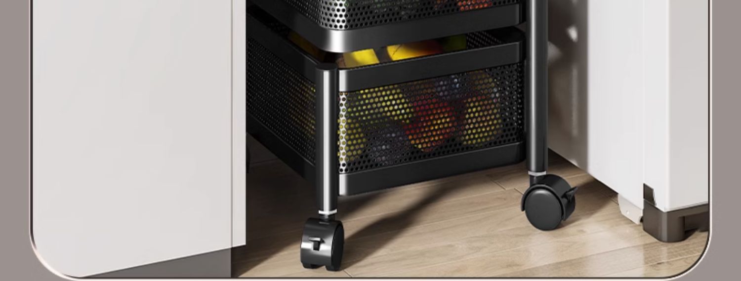주방 회전 스토리지 랙 바닥 다층 가정용 거실 스낵 보관 랙 과일 및 야채 다기능 카트 선반