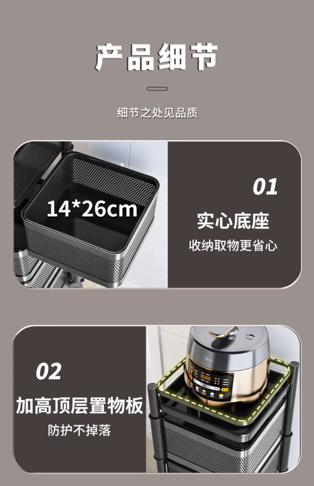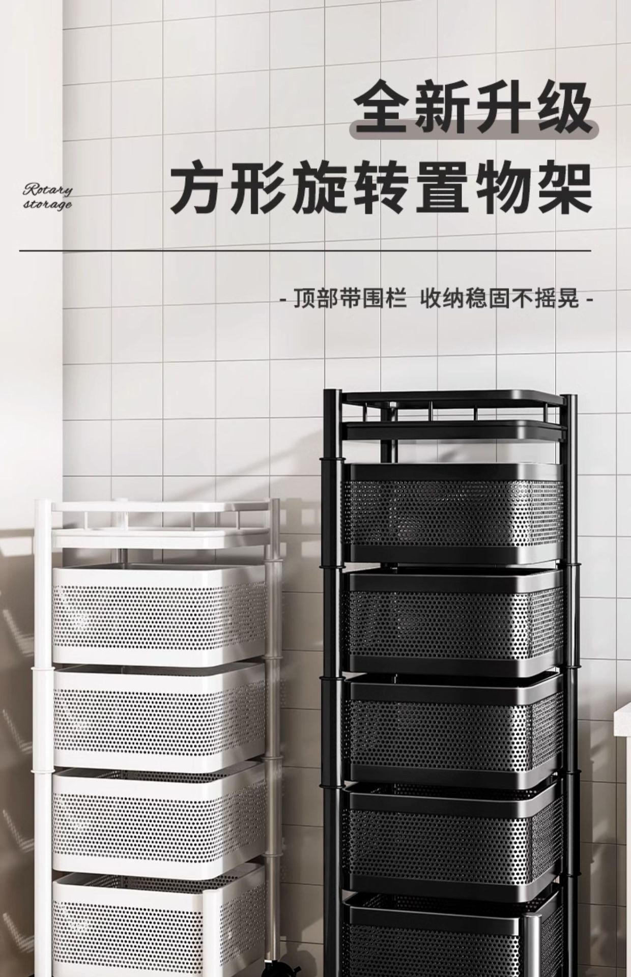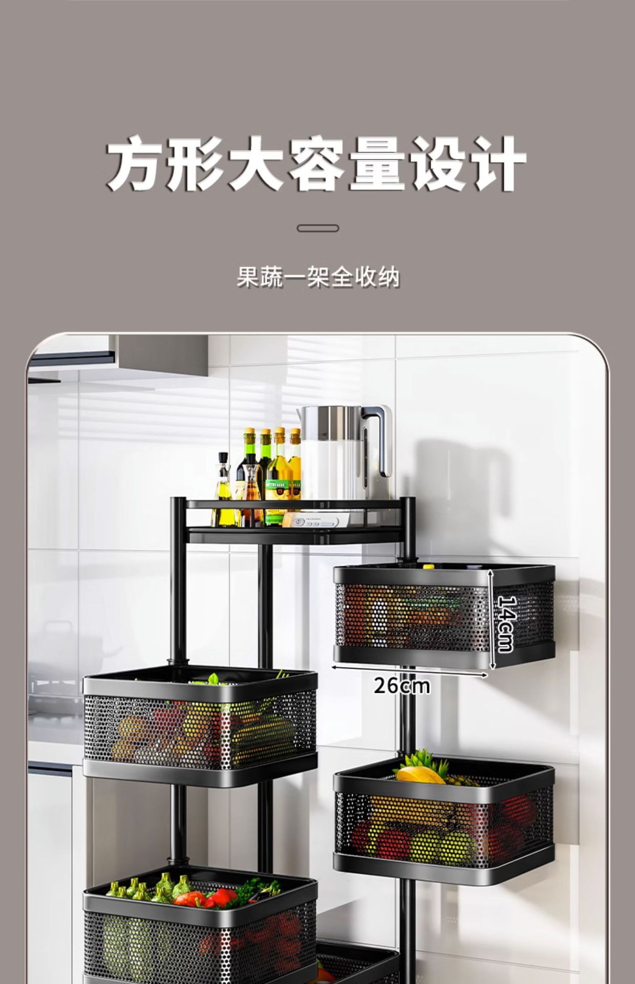 주방 회전 스토리지 랙 바닥 다층 가정용 거실 스낵 보관 랙 과일 및 야채 다기능 카트 선반