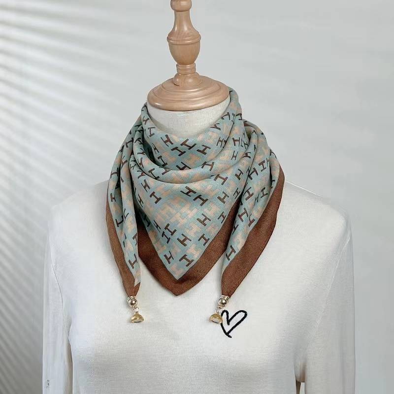 • 화려한 깃털이 달린 실크 코튼 마그네틱 버클 실크 스카프