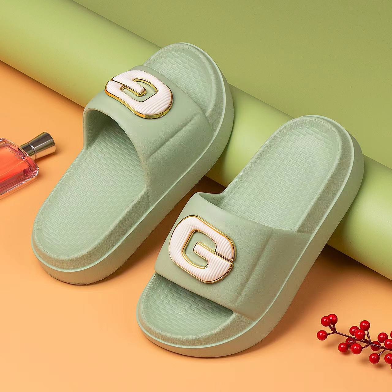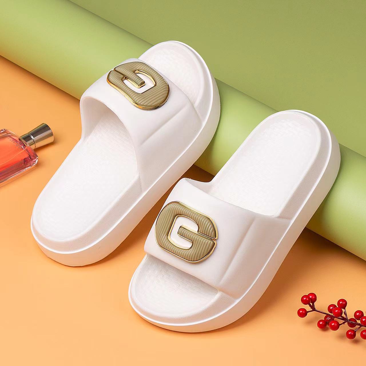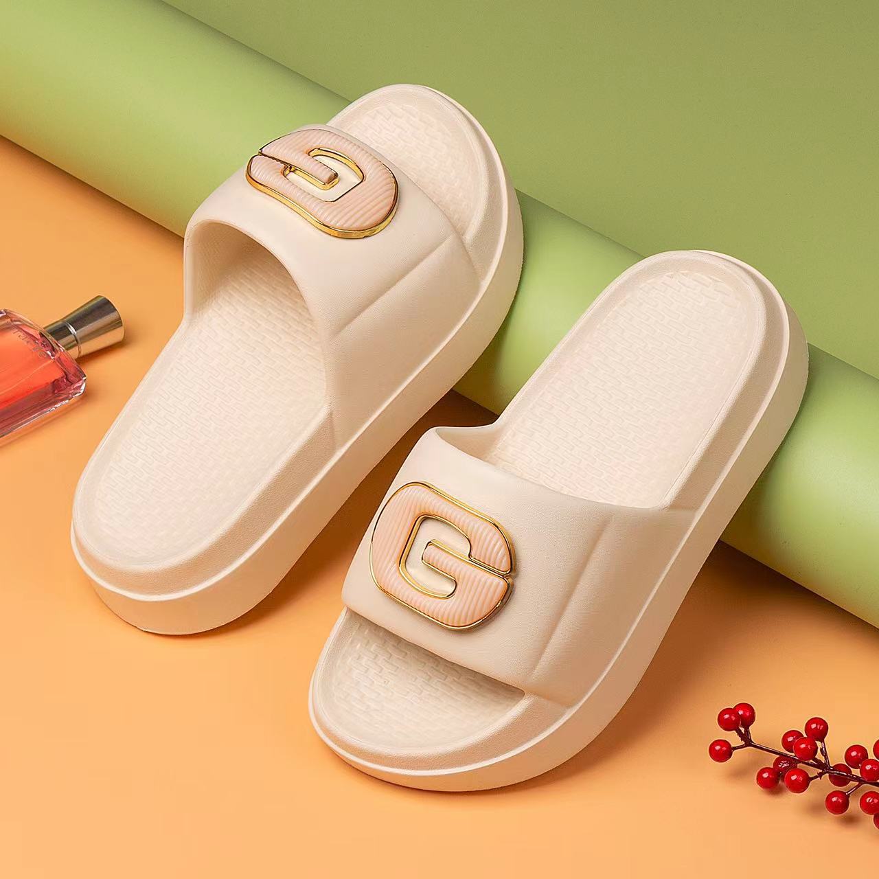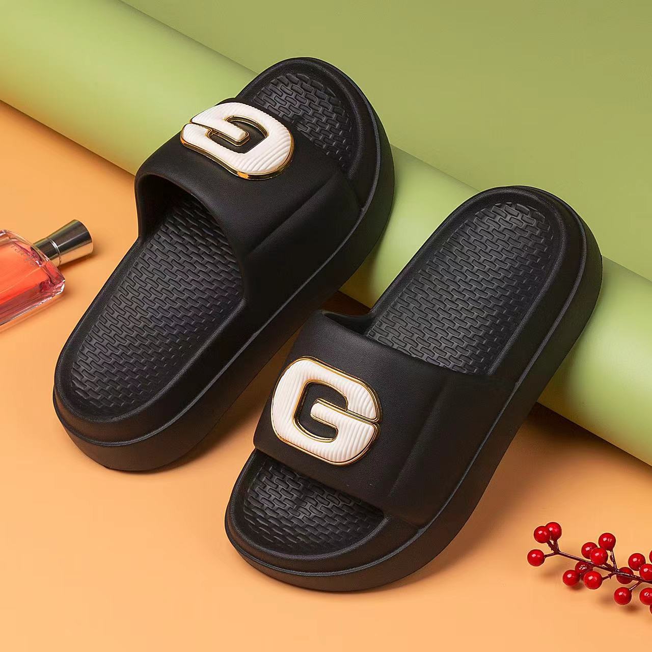 두꺼운 밑창의 여성용 샤넬 스타일 슬리퍼, 매우 부드러운 밑창의 비치 슬리퍼, 통기성 좋고 편안하며 다용도로 활용 가능한 도매 상품입니다.