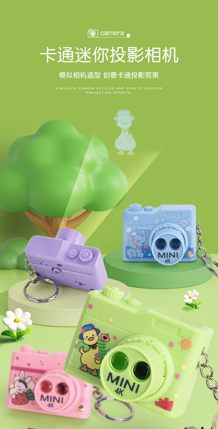 재미있는 카메라 프로젝터 키 체인 빛 동적 만화 패턴 카메라 프로젝션 백 펜던트 장난감스토어 가기