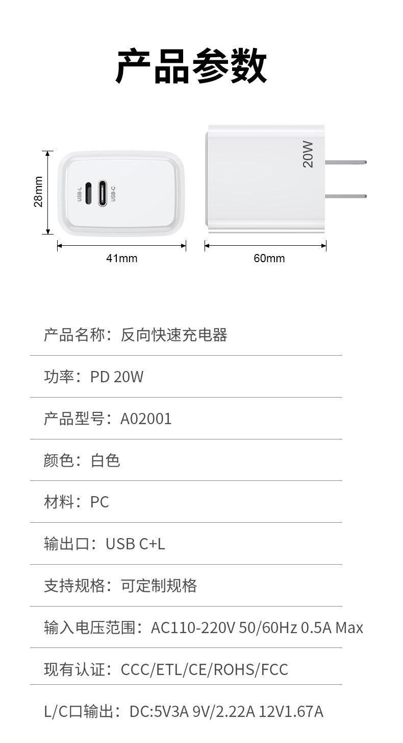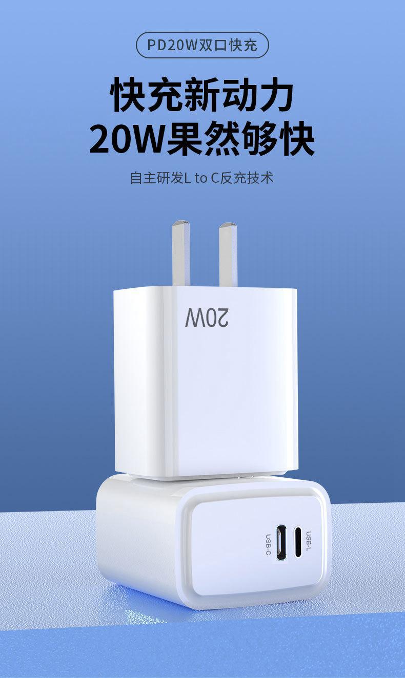 PD20W 충전기 고속 충전 듀얼 포트 출력 C + L 역 충전 헤드는 Apple Huawei 태블릿에 적합합니다.