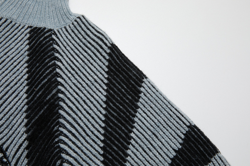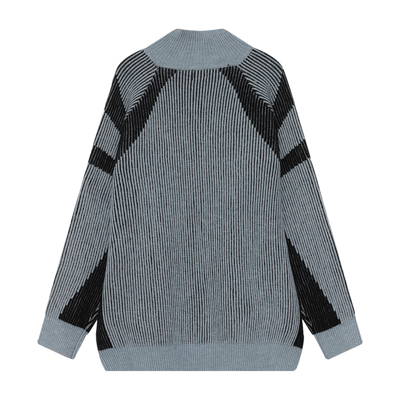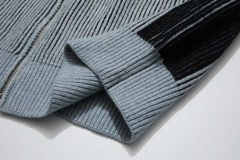 전국 유행 아메리칸 스타일 레트로 명암 컬러 스트라이프 지퍼 수직 칼라 스웨터 남성 가을 겨울 트렌디 브랜드 느슨한 니트 카디건 재킷
