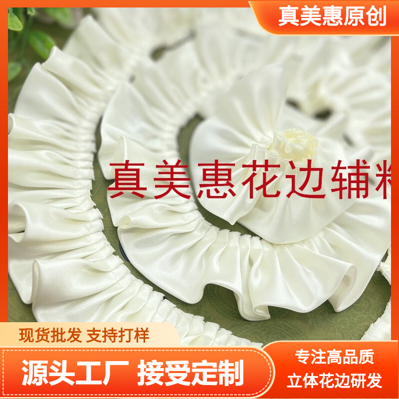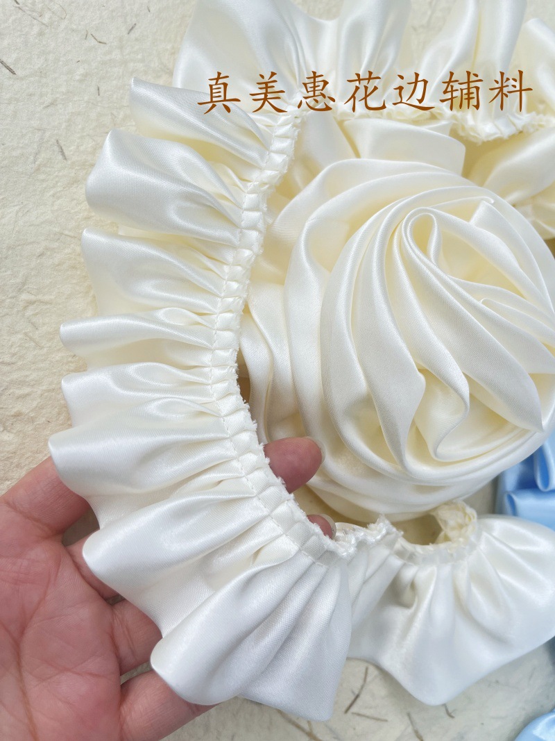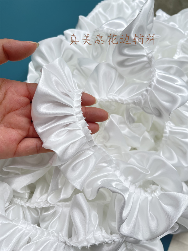 5cm 흰색 더블 레이어 새틴 나무 귀 레이스 인형 옷 스커트 커프 커튼 레이스 액세서리스토어 가기