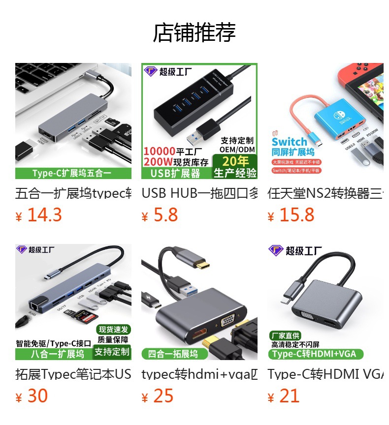 usb扩展器转接头多接口插头typec拓展坞集分线笔记本Mac/mateBookair/pro外接u盘侧边直插ipad转换器