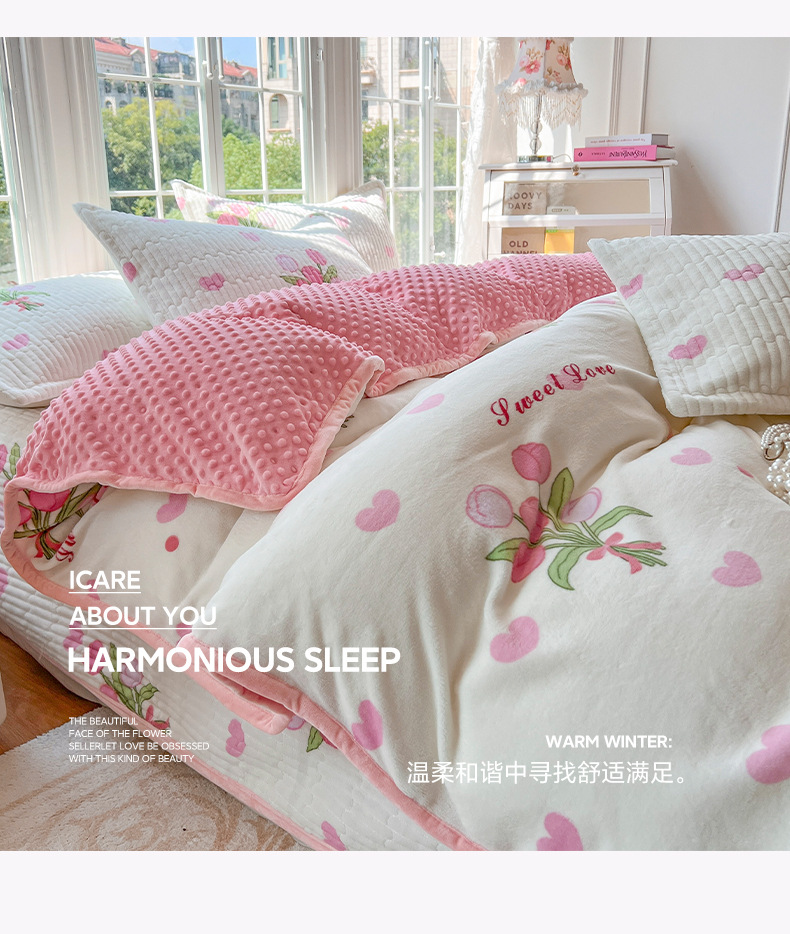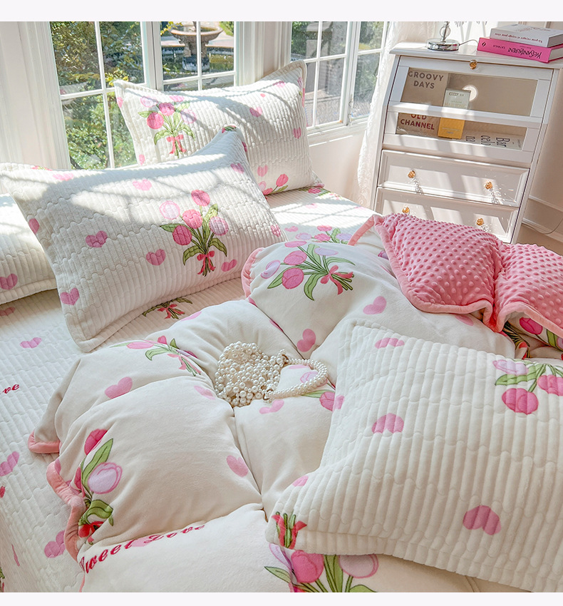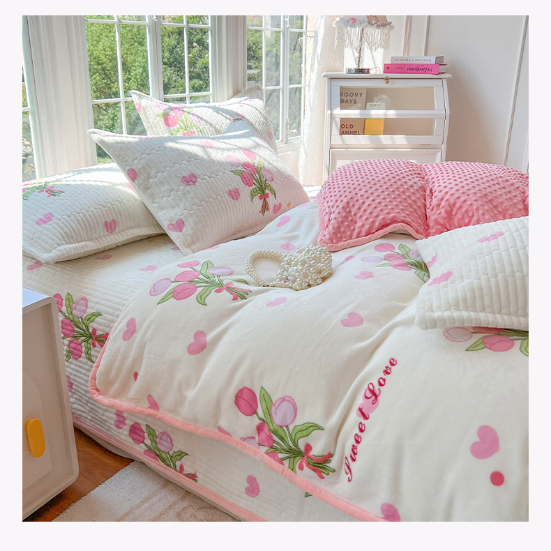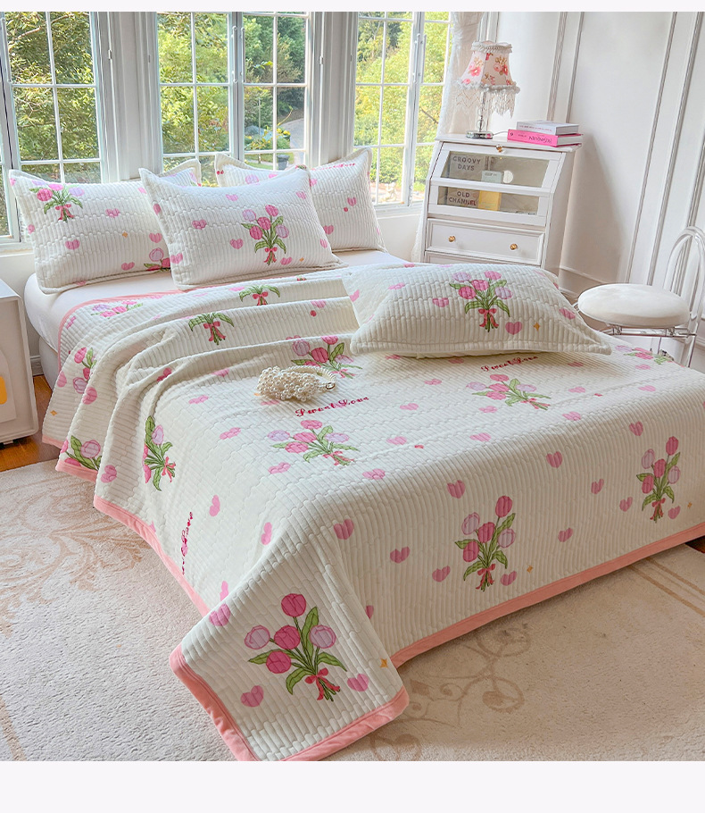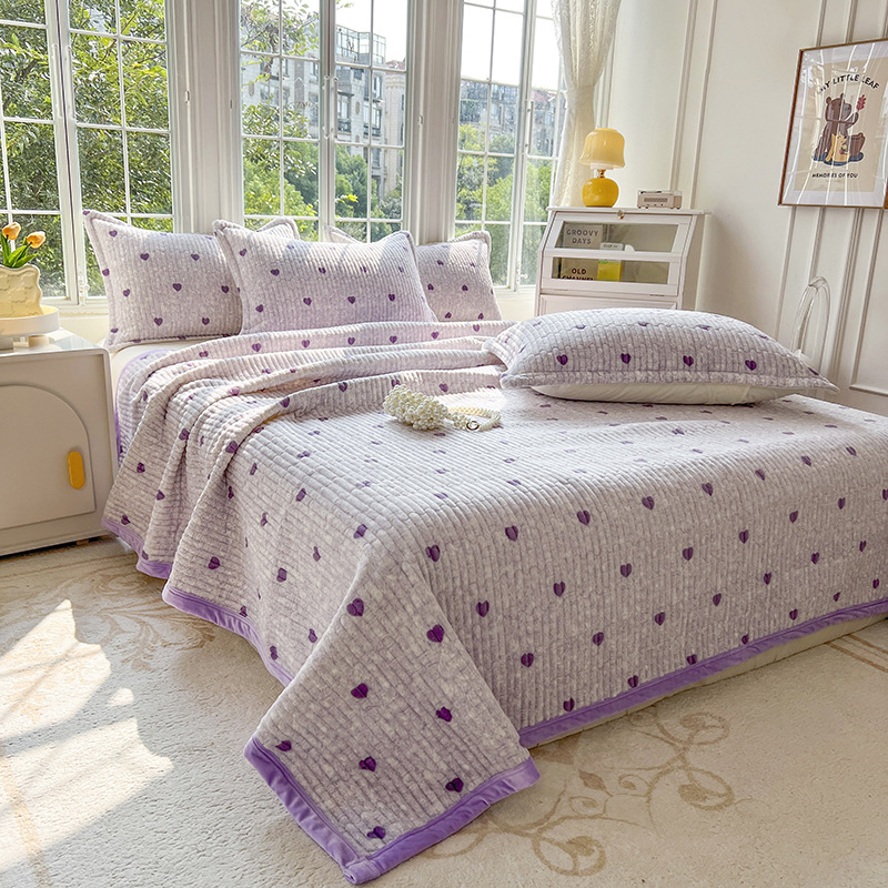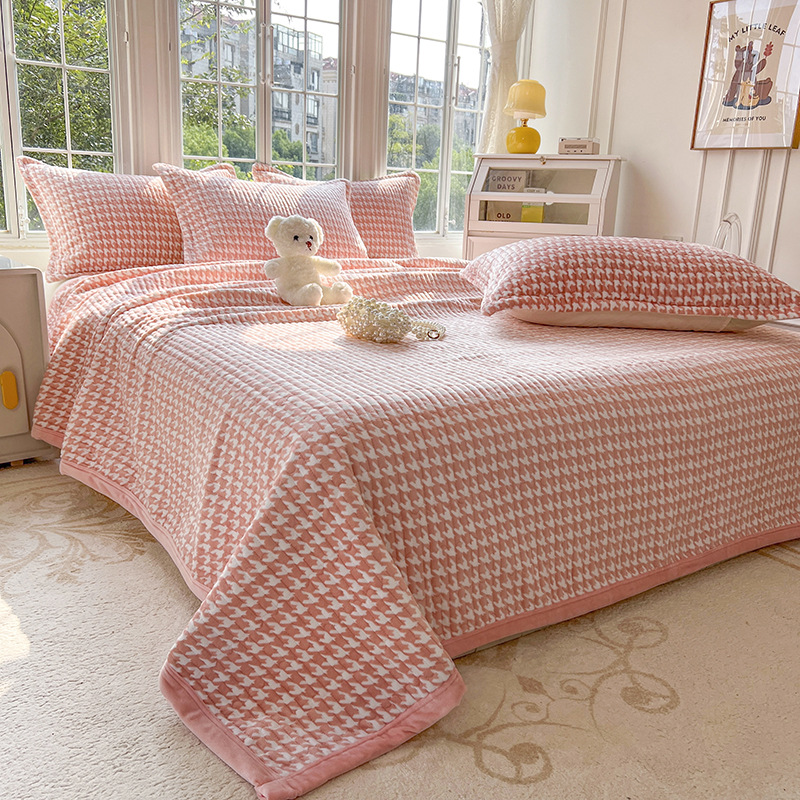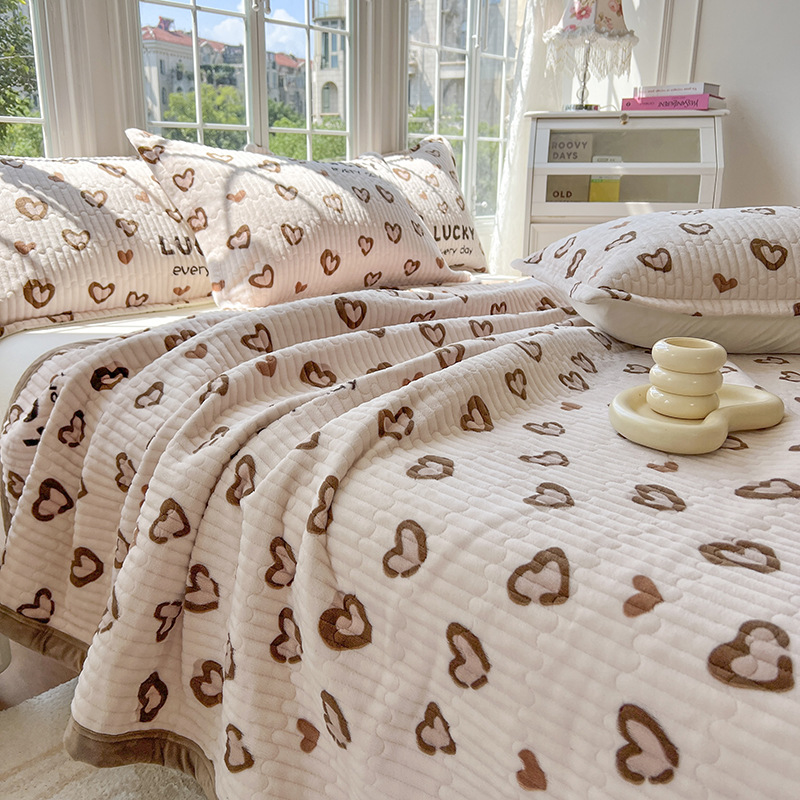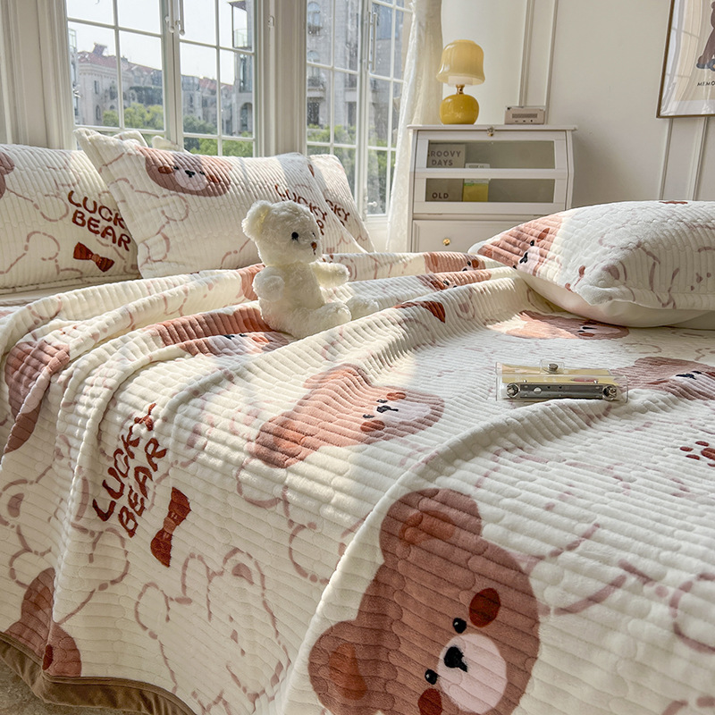 가을과 겨울의 두꺼운 콩 벨벳 침대 커버 4 조각 우유 벨벳 3 조각 두껍게 따뜻한 싱글 침대 커버 침대 시트 퀼트 커버