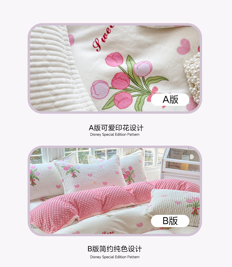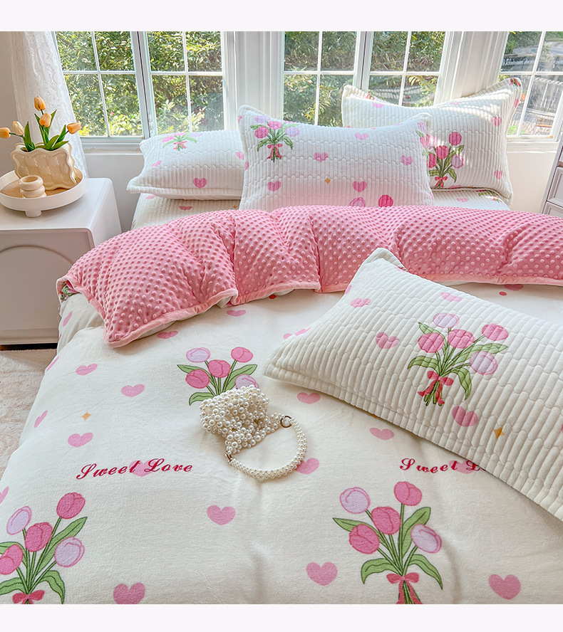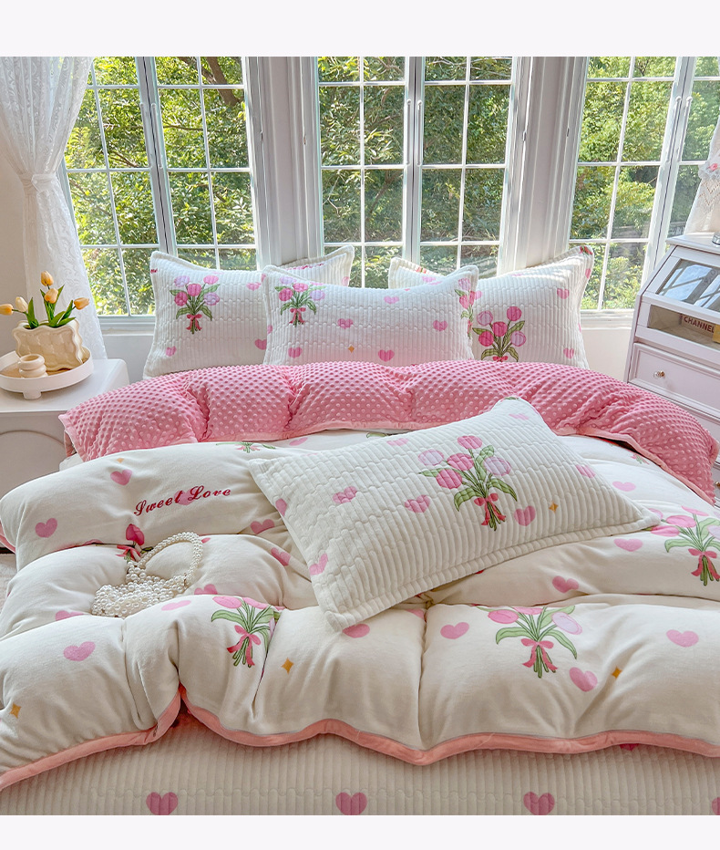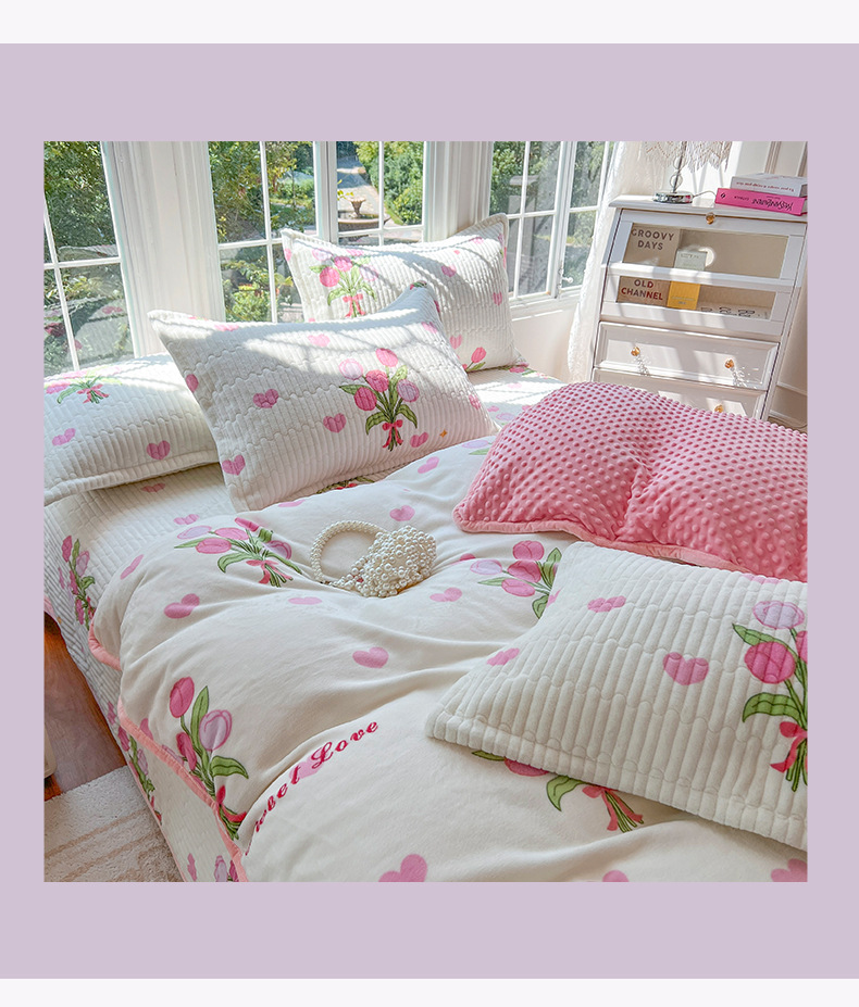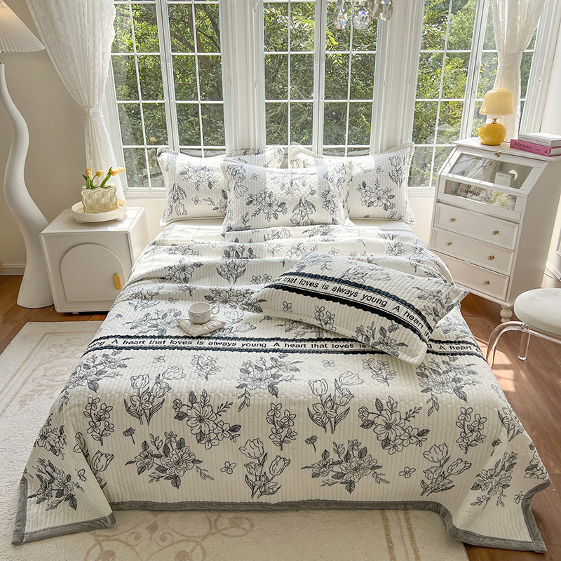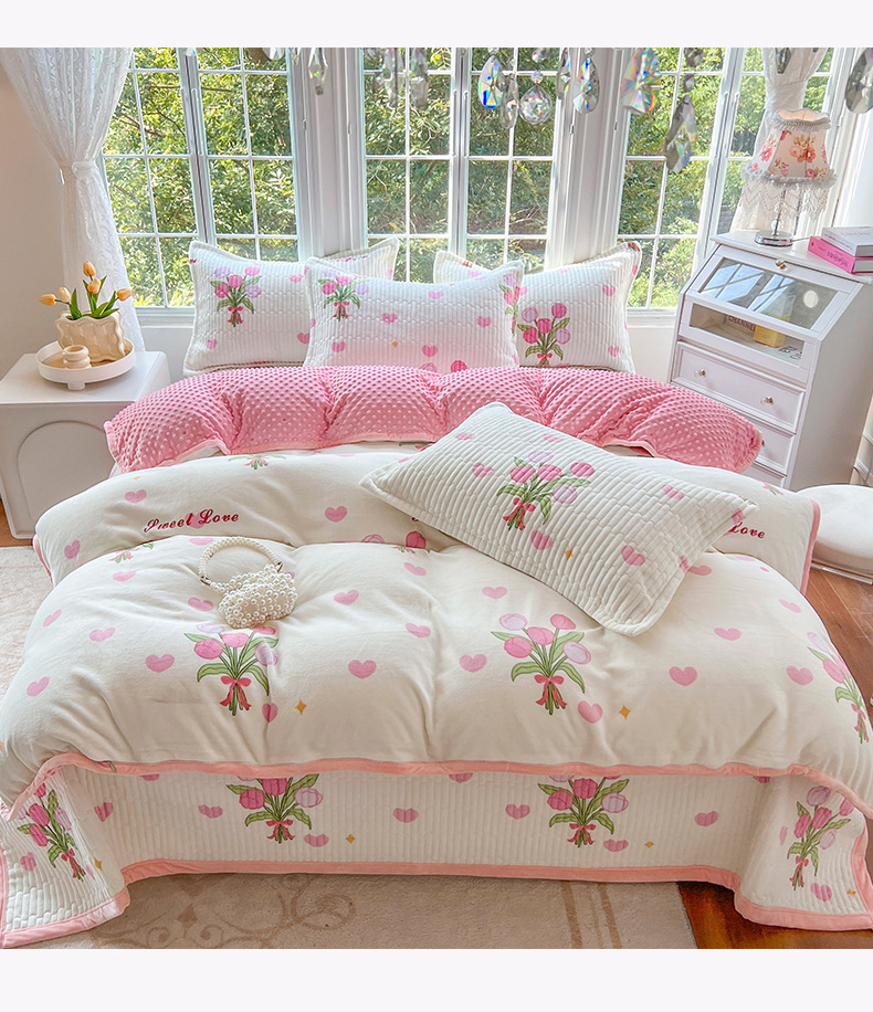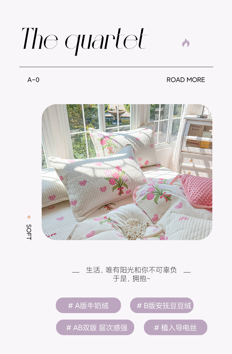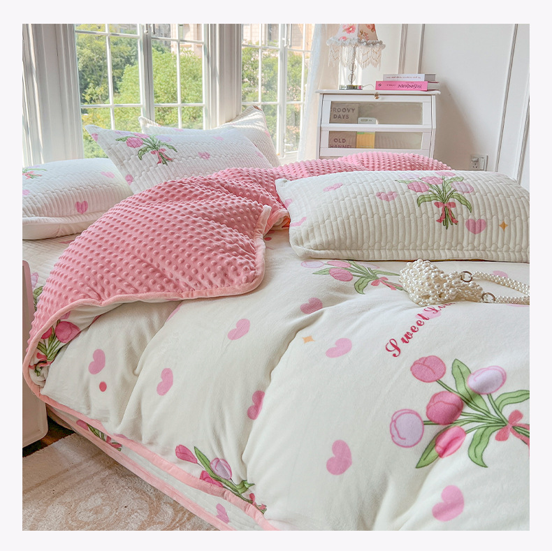 가을과 겨울의 두꺼운 콩 벨벳 침대 커버 4 조각 우유 벨벳 3 조각 두껍게 따뜻한 싱글 침대 커버 침대 시트 퀼트 커버