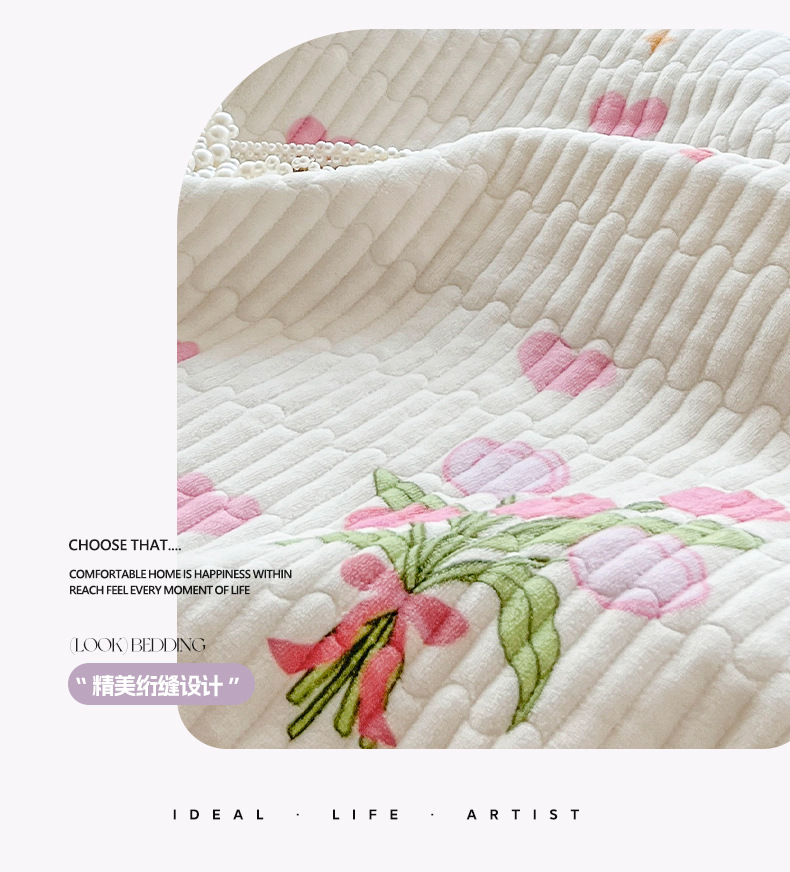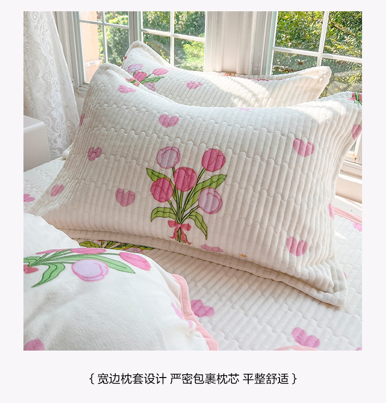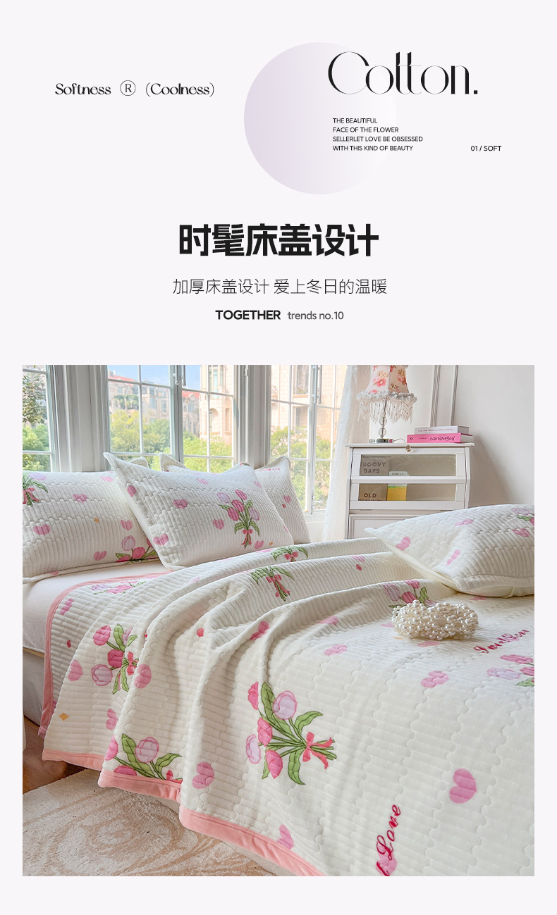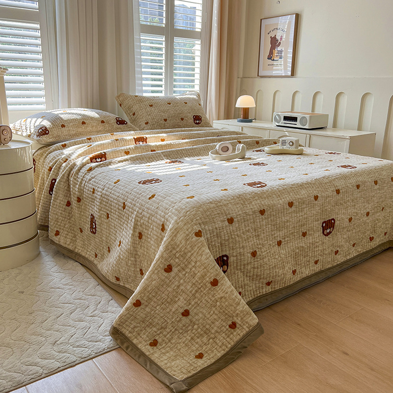 가을과 겨울의 두꺼운 콩 벨벳 침대 커버 4 조각 우유 벨벳 3 조각 두껍게 따뜻한 싱글 침대 커버 침대 시트 퀼트 커버스토어 가기