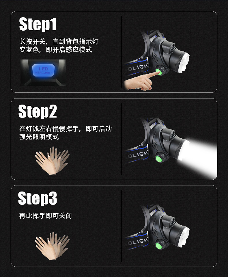 국경 전용 v9 헤드 라이트 강한 빛 슈퍼 밝은 줌 손전등 야외 롱 샷 usb 충전 유도 야간 낚시