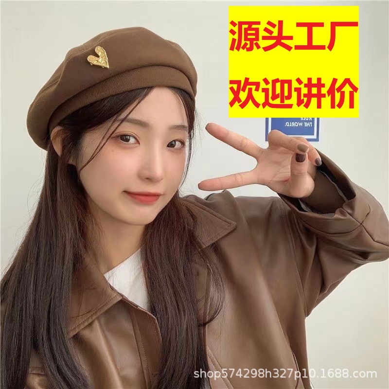사랑 베레모 사랑 여성 가을과 겨울 일본 모직 만화 곰 화가 모자 큰 머리 둘레 쇼 얼굴 귀여운 03스토어 가기