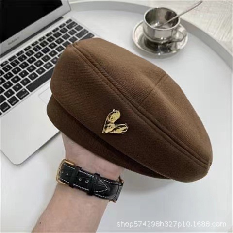 사랑 베레모 사랑 여성 가을과 겨울 일본 모직 만화 곰 화가 모자 큰 머리 둘레 쇼 얼굴 귀여운 03