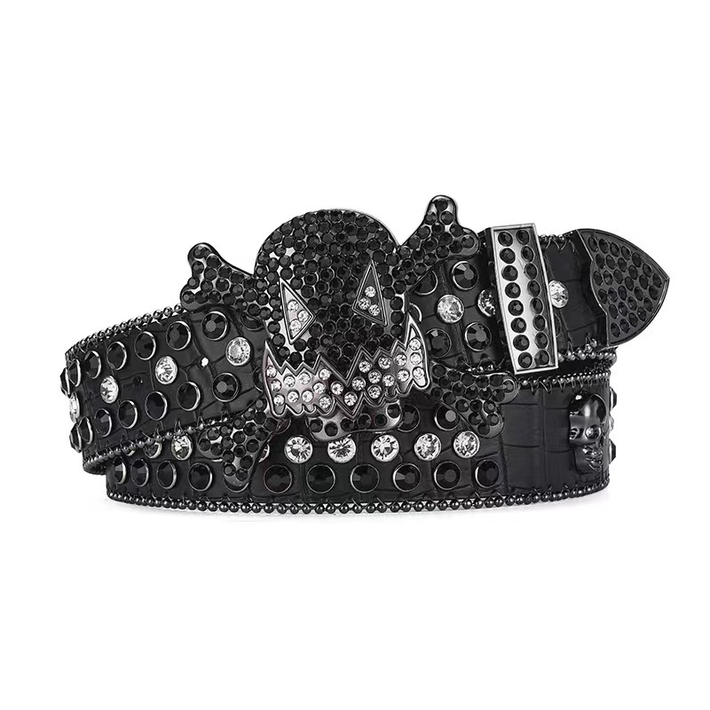 크로스 보더 새로운 합금 다이아몬드 해골 여성용 벨트 플레이트 버클 벨트 비즈 펑크 도매스토어 가기