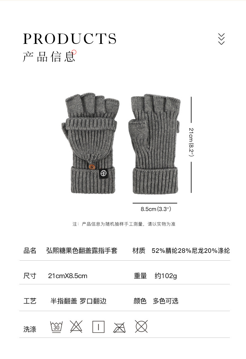 캔디 컬러 핑거 플립 반 손가락 장갑 니트 터치 스크린 따뜻한 장갑 이중 목적 이중 레이어 두꺼운 방한 가을과 겨울스토어 가기