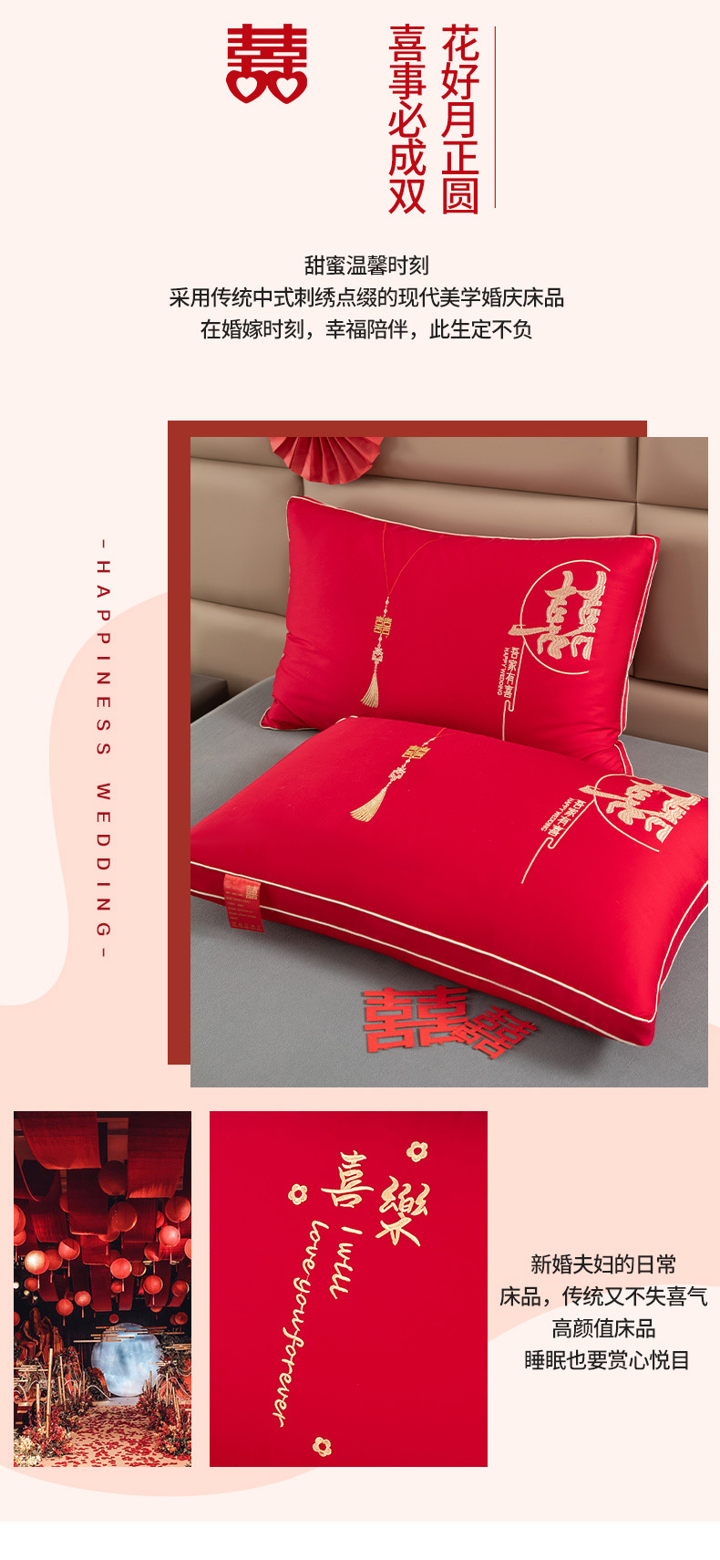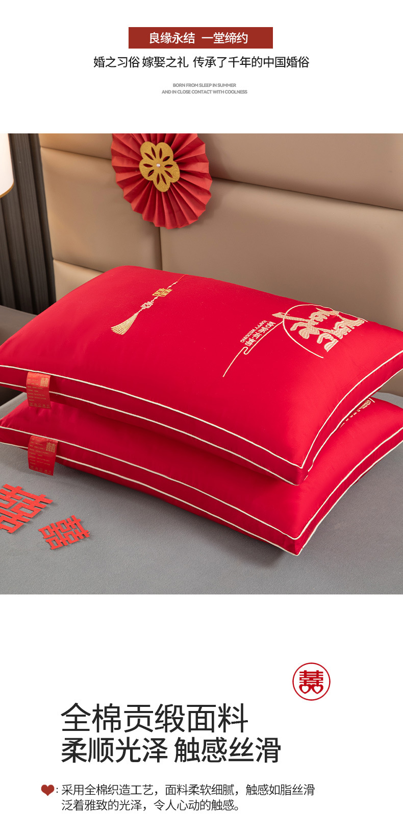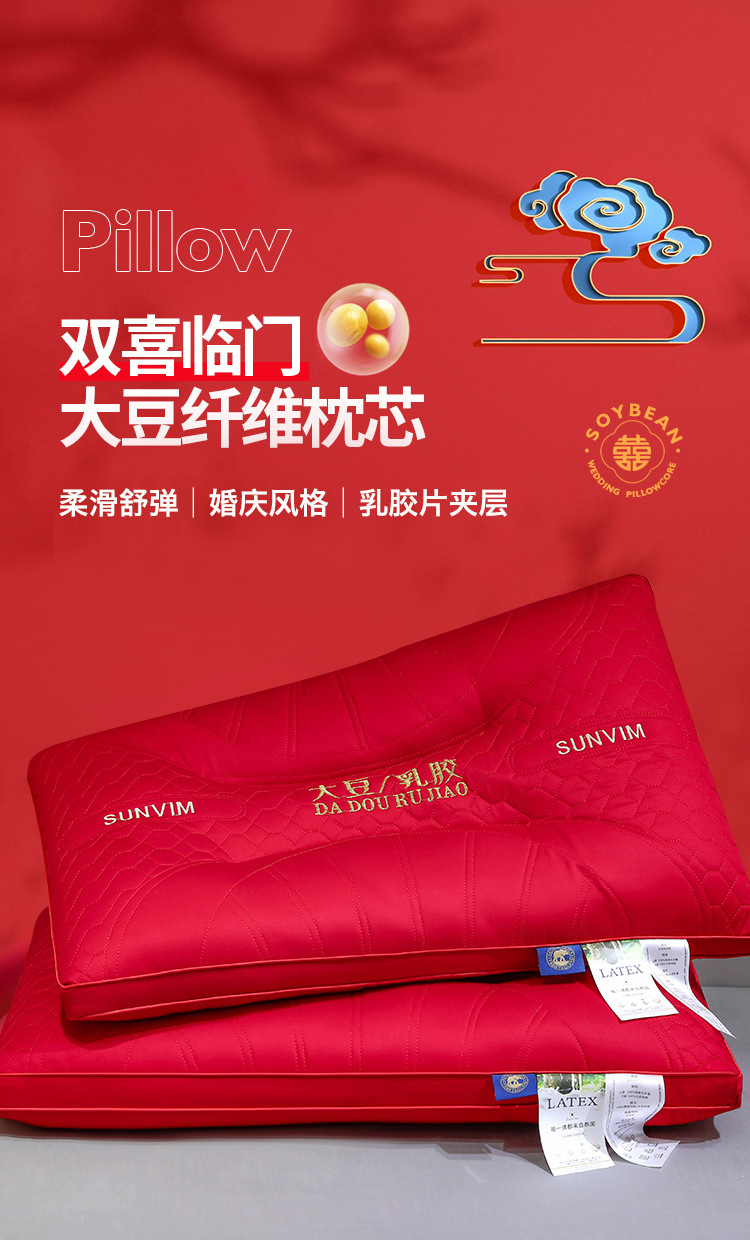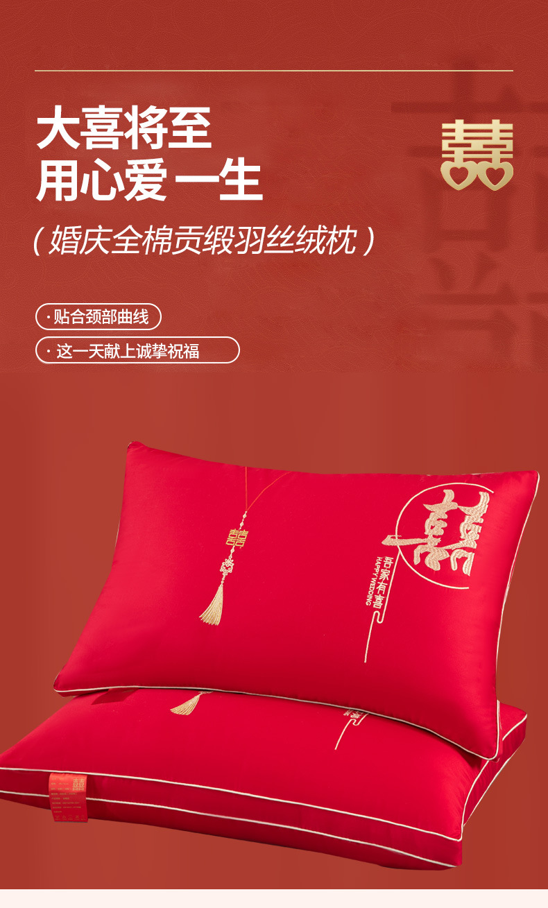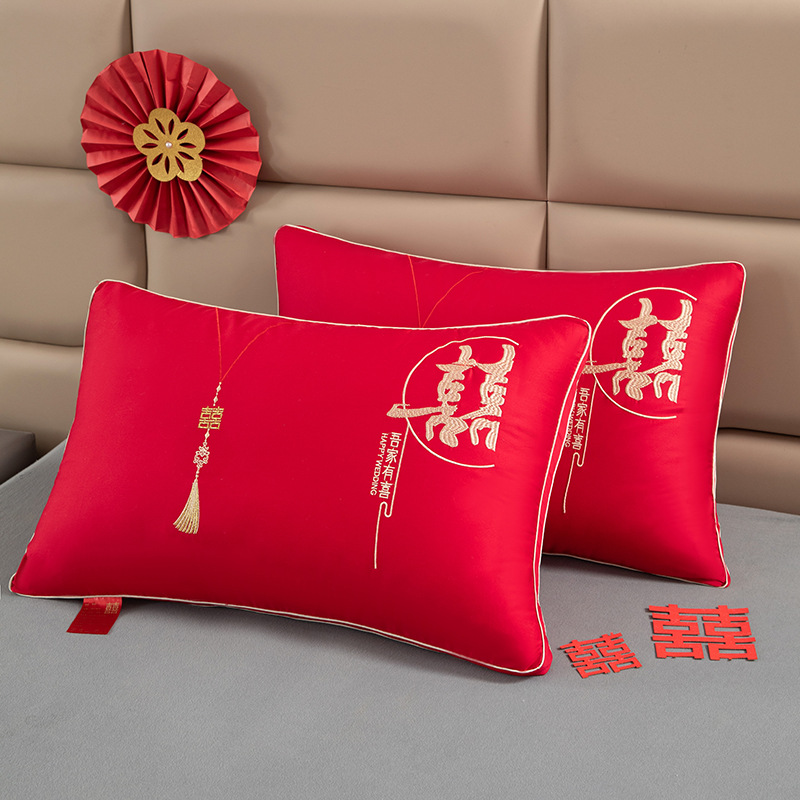 웨딩 베개 베개 코어면 순면 깃털 실크 코튼 빅 레드 웨딩 축제 결혼식 동반 선물 홈 베개스토어 가기