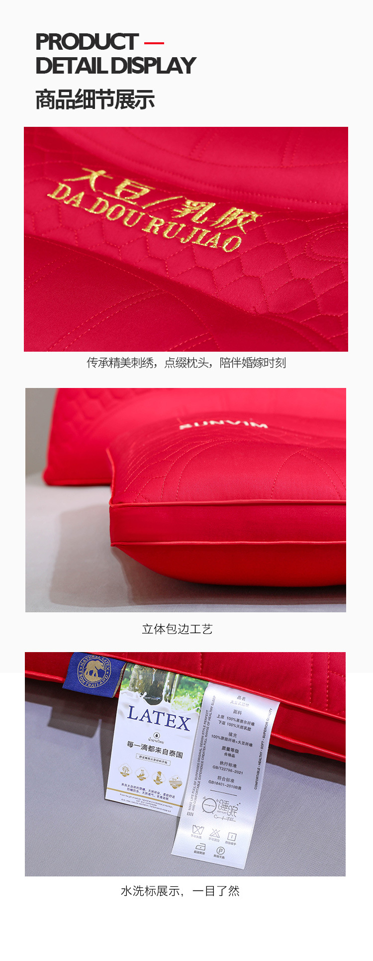 웨딩 베개 베개 코어면 순면 깃털 실크 코튼 빅 레드 웨딩 축제 결혼식 동반 선물 홈 베개