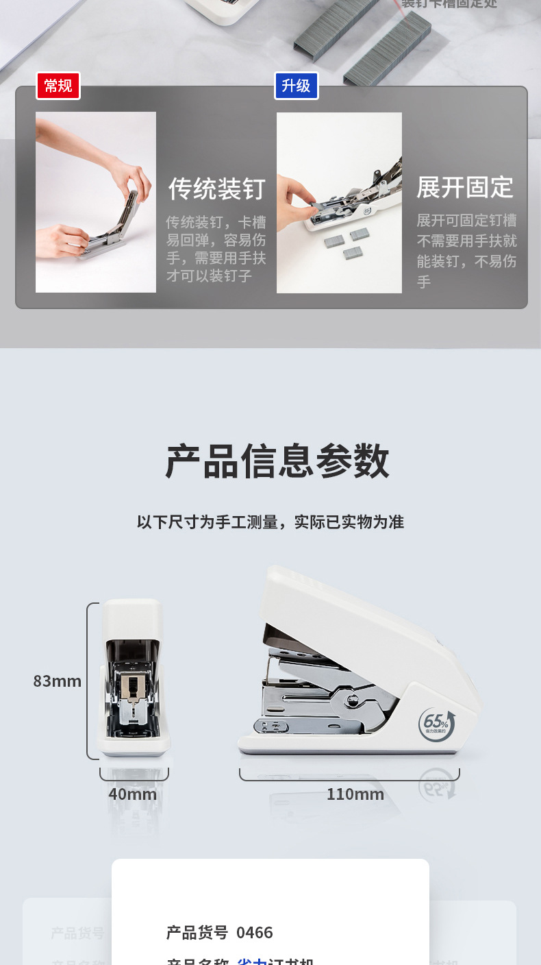 델리 0466 노동 절약 스테이플러 사무실 스테이플러 노동 절약 바인딩 기계 가정용 바인딩 기계 테이크 아웃 포장