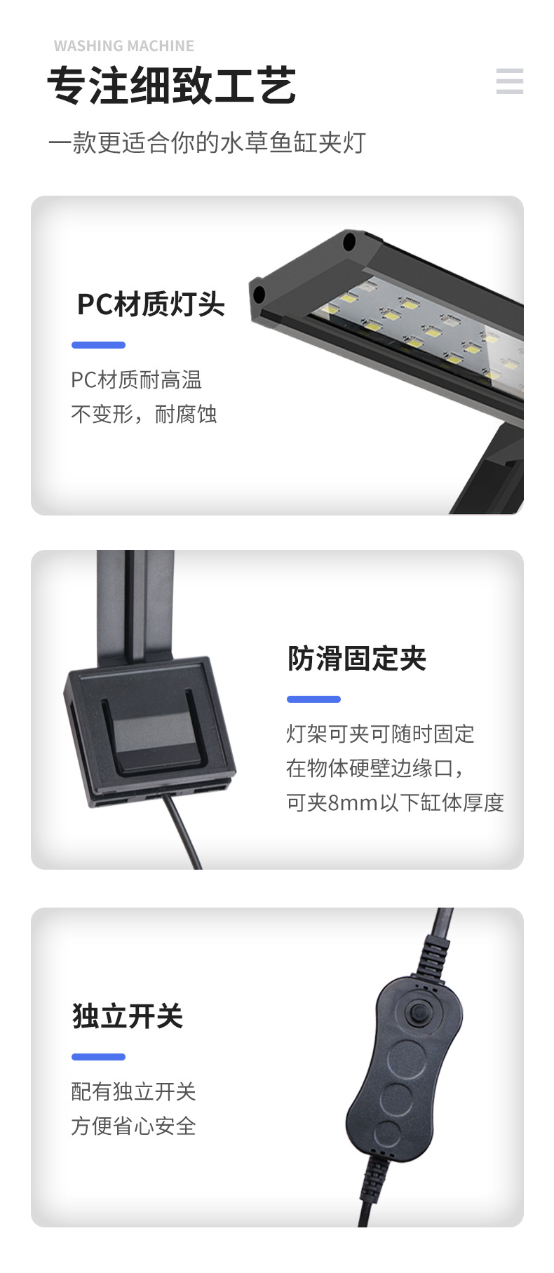 물고기 탱크 조명 수족관 작은 에너지 절약 방수 클립 램프 마이크로 풍경 조류 폭발 LED 물고기 탱크 잔디 램프