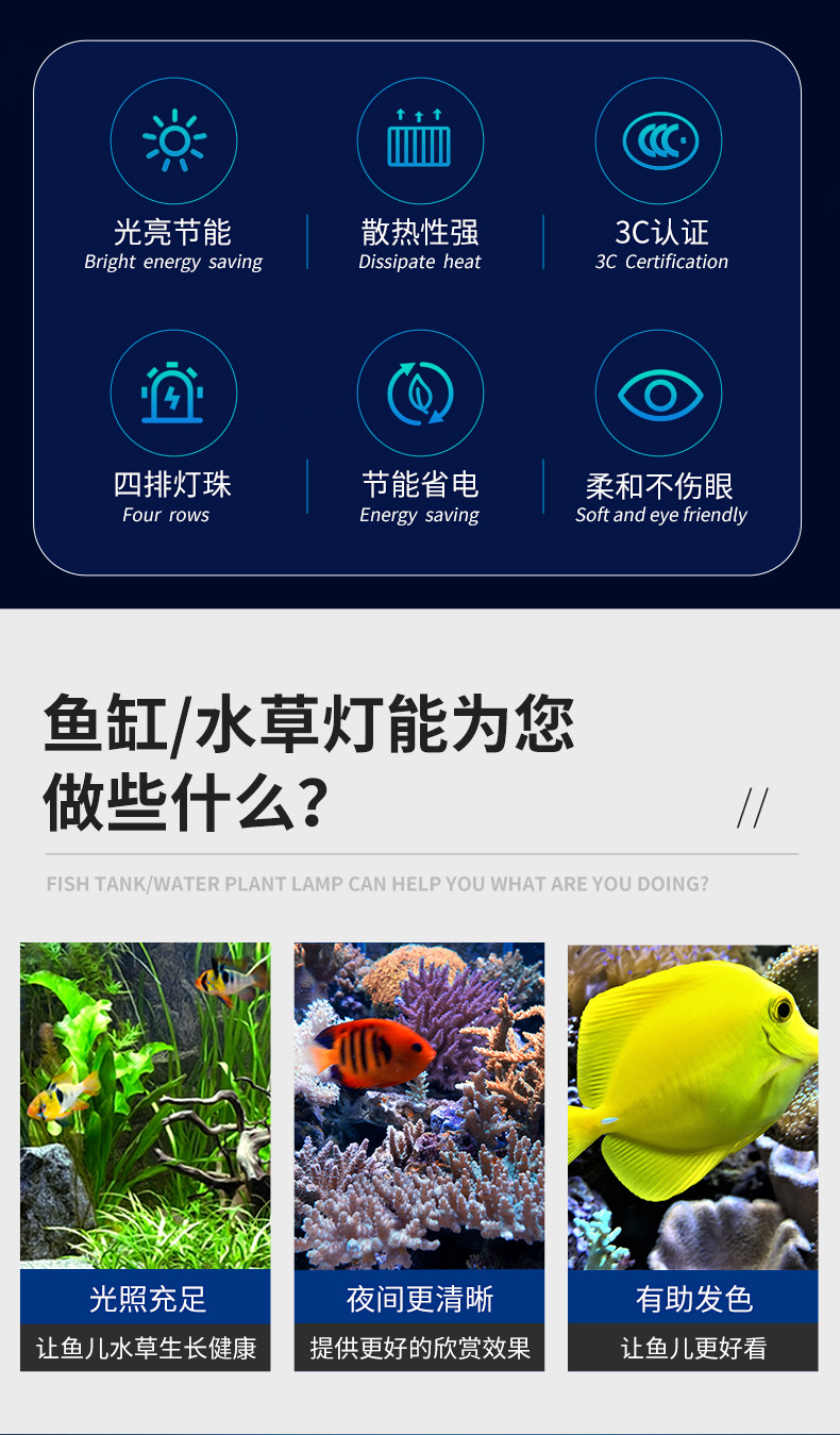 물고기 탱크 조명 수족관 작은 에너지 절약 방수 클립 램프 마이크로 풍경 조류 폭발 LED 물고기 탱크 잔디 램프스토어 가기