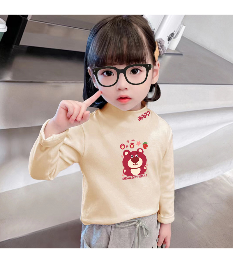 어린이 벨벳베이스 셔츠 어린이 반 높이 칼라 감기 방지 탑 2023 가을 및 겨울 스타일 어린이 따뜻한 긴팔 티셔츠스토어 가기