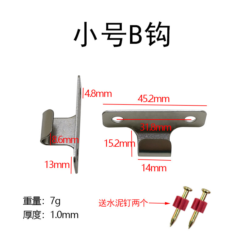 • 1 개의 스몰 사이즈 벽 후크 2 개의 시멘트 못을 무료로 얻습니다.