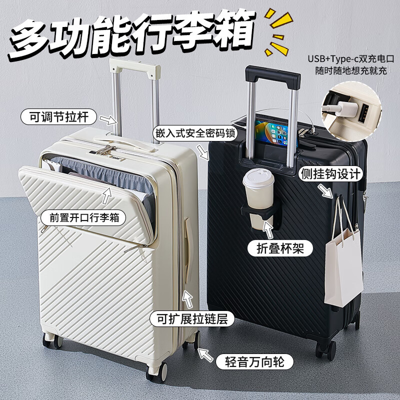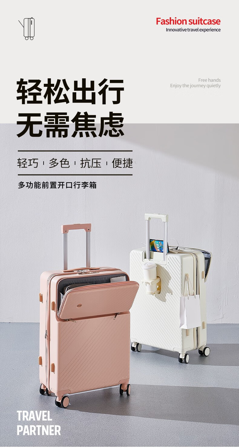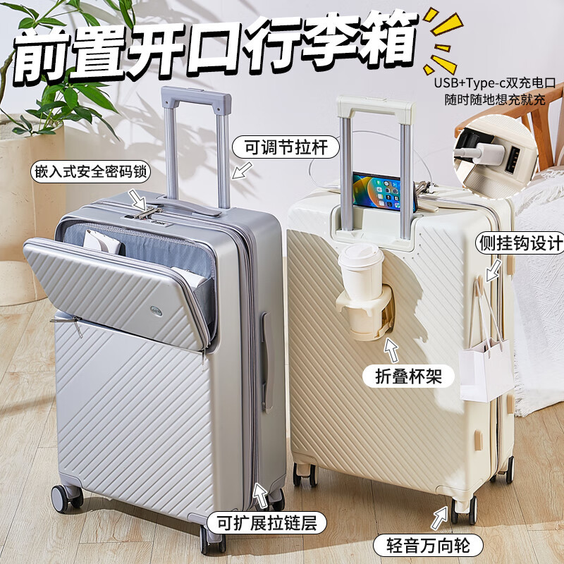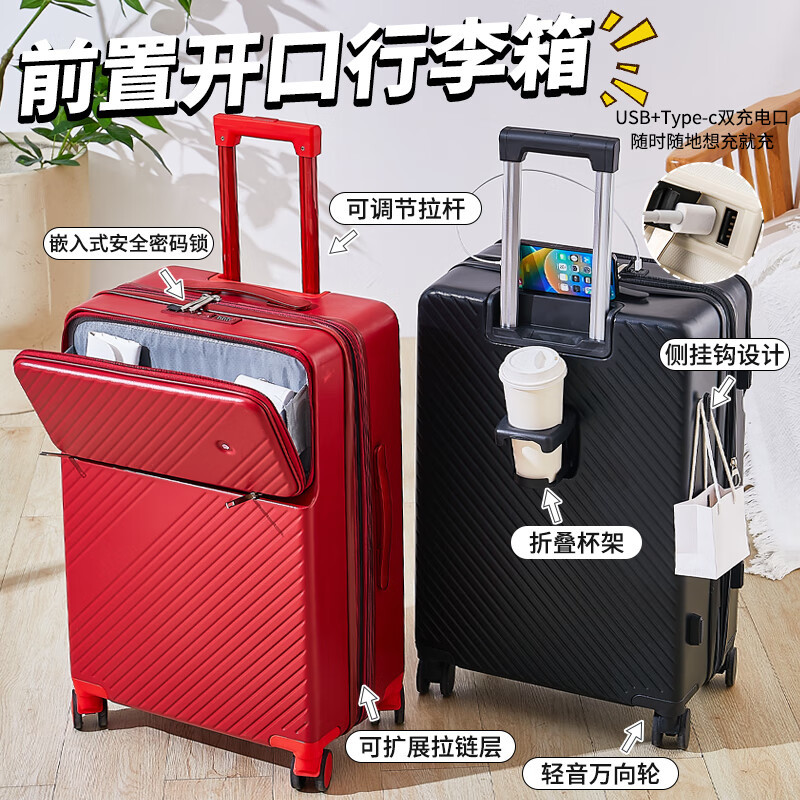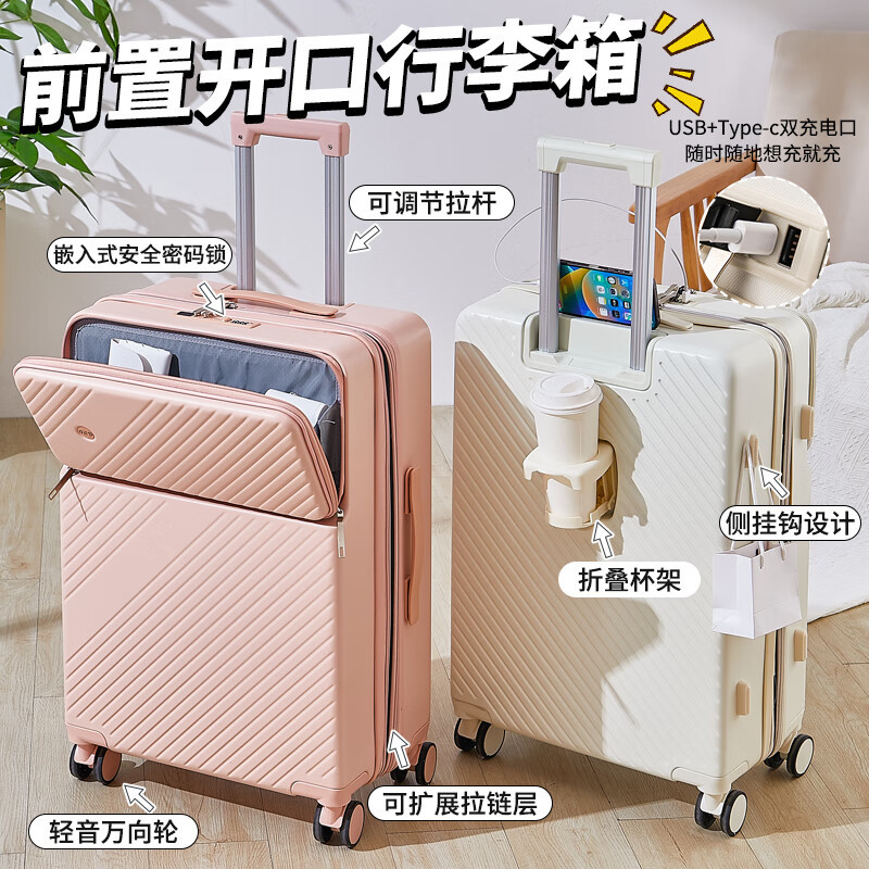확장 가능한 지퍼 여행가방 여성용 24inch 가방 전면 개방형 학생용 트롤리 가방 20 여행용 코드 잠금 상자스토어 가기