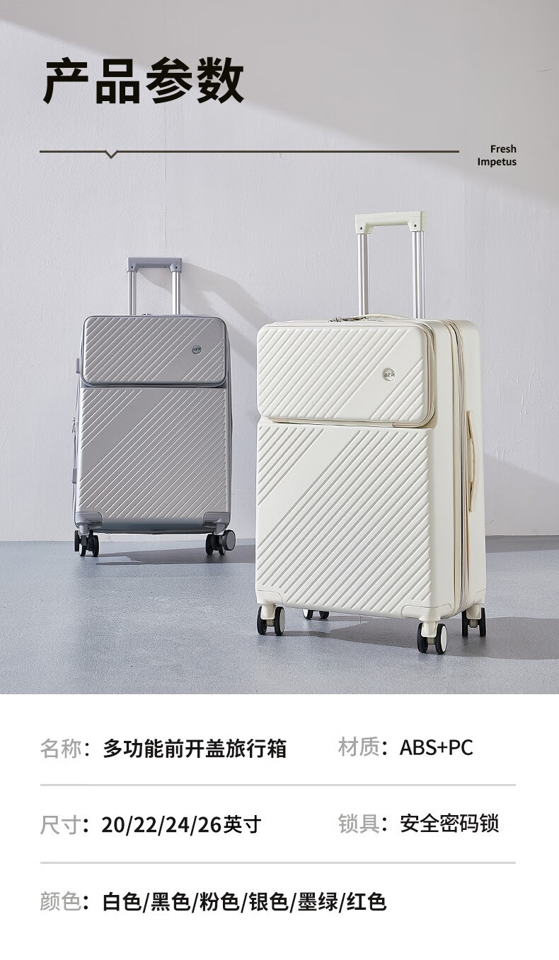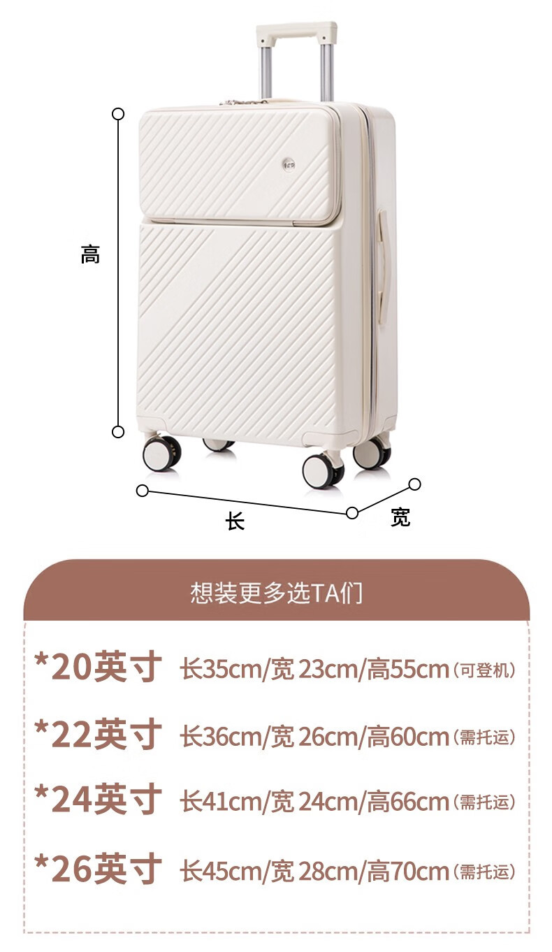 확장 가능한 지퍼 여행가방 여성용 24inch 가방 전면 개방형 학생용 트롤리 가방 20 여행용 코드 잠금 상자
