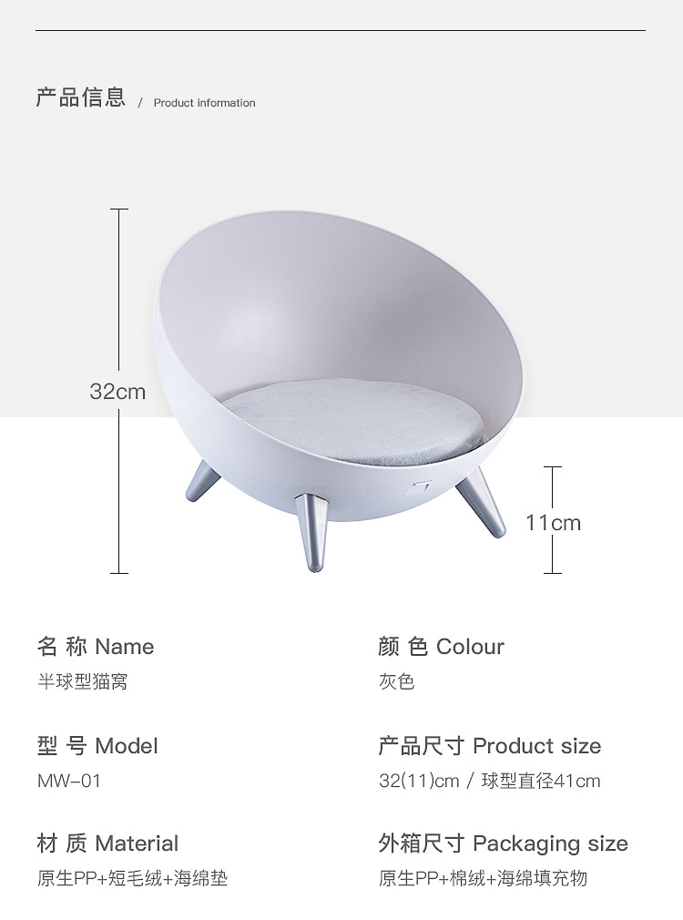 창조적 인 북유럽 스타일 고양이 둥지 반구 애완 동물 둥지 고양이 용품 소파 아름답고 편안한 사육장 고양이 둥지 도매