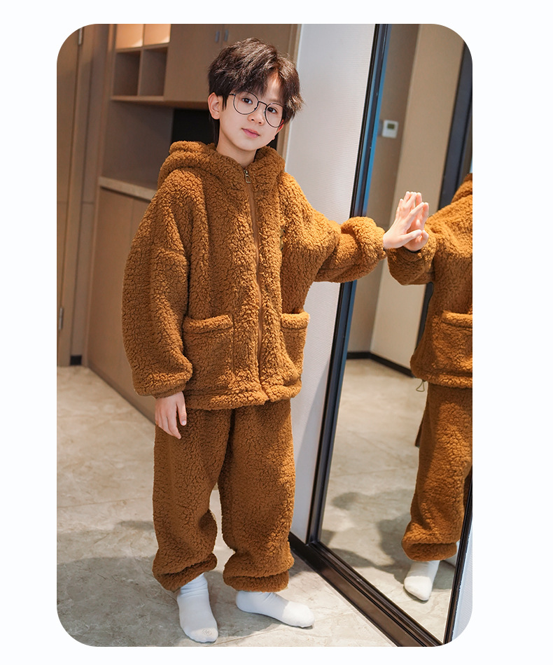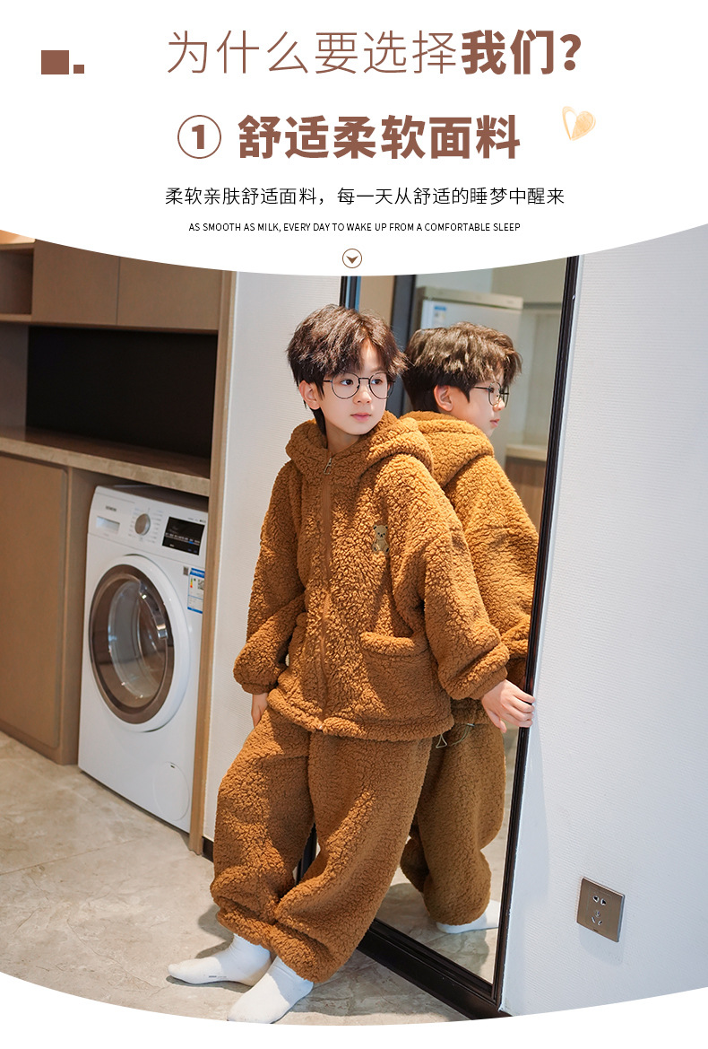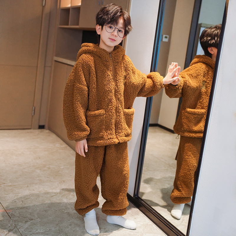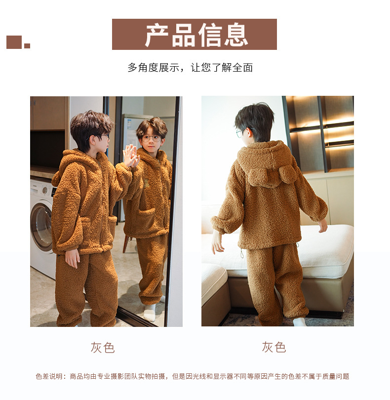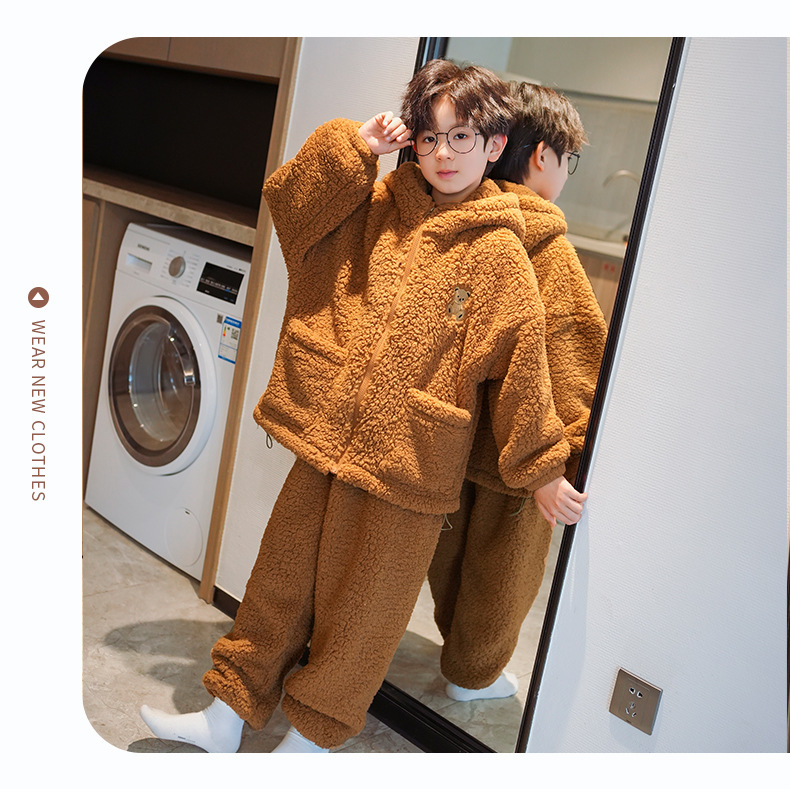 아동 잠옷, 남아용 가을 겨울 산호 벨벳 두꺼운 버전, 중대형 아동용 남아용 플란넬 가정복, 2025 새로운 스타일스토어 가기