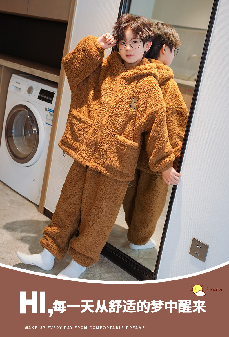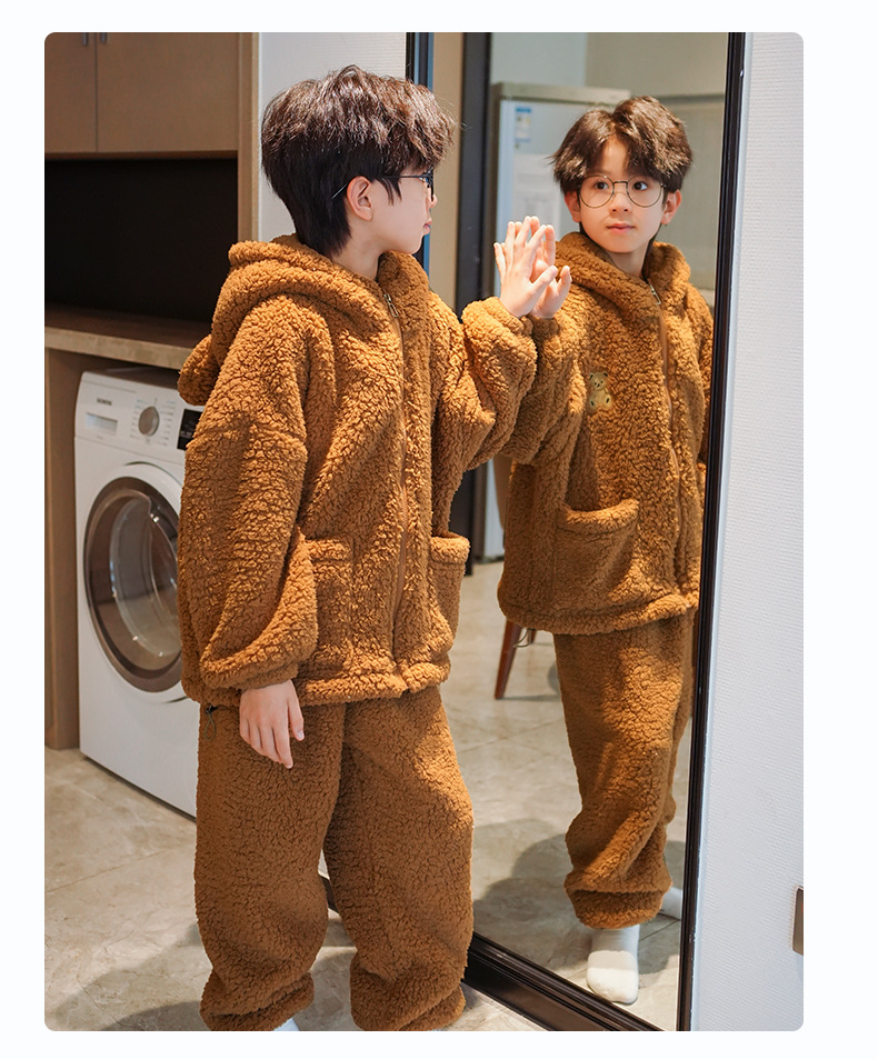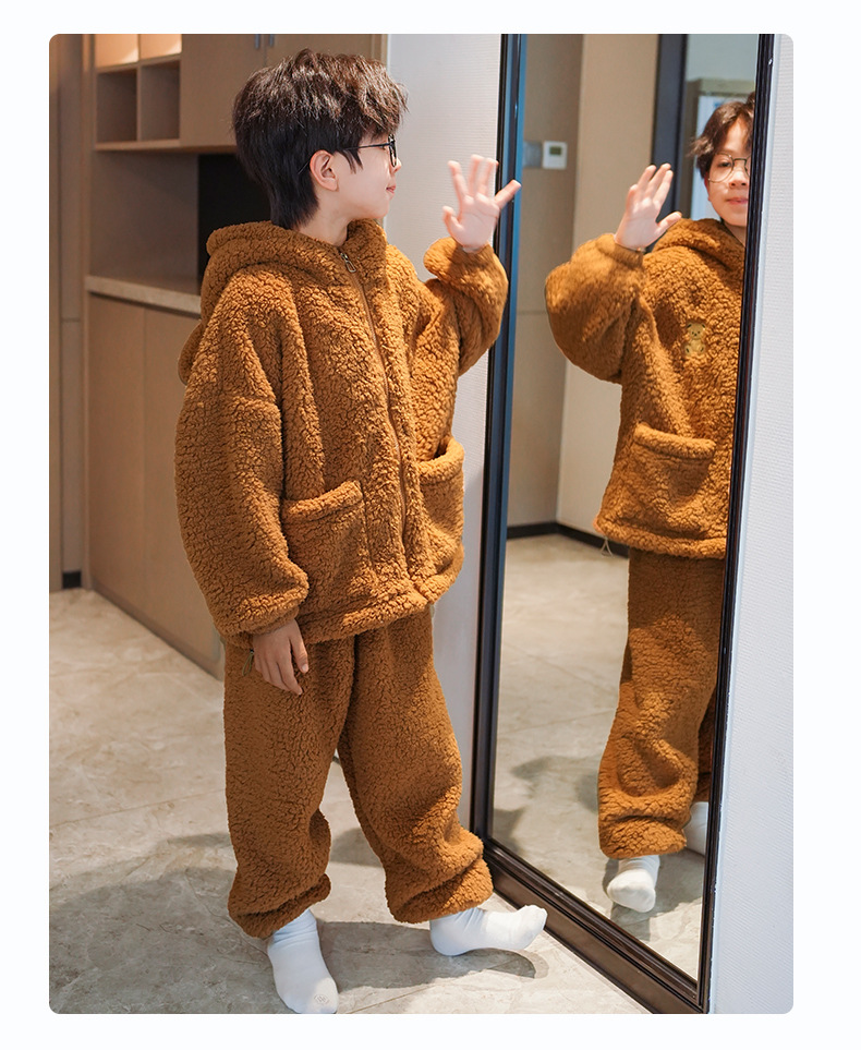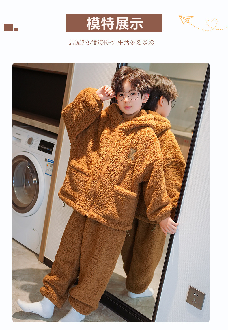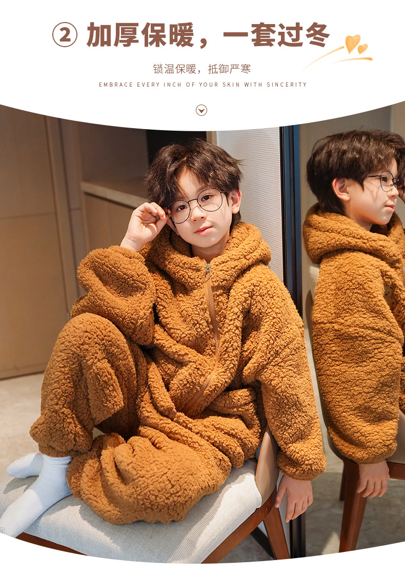 아동 잠옷, 남아용 가을 겨울 산호 벨벳 두꺼운 버전, 중대형 아동용 남아용 플란넬 가정복, 2025 새로운 스타일스토어 가기
