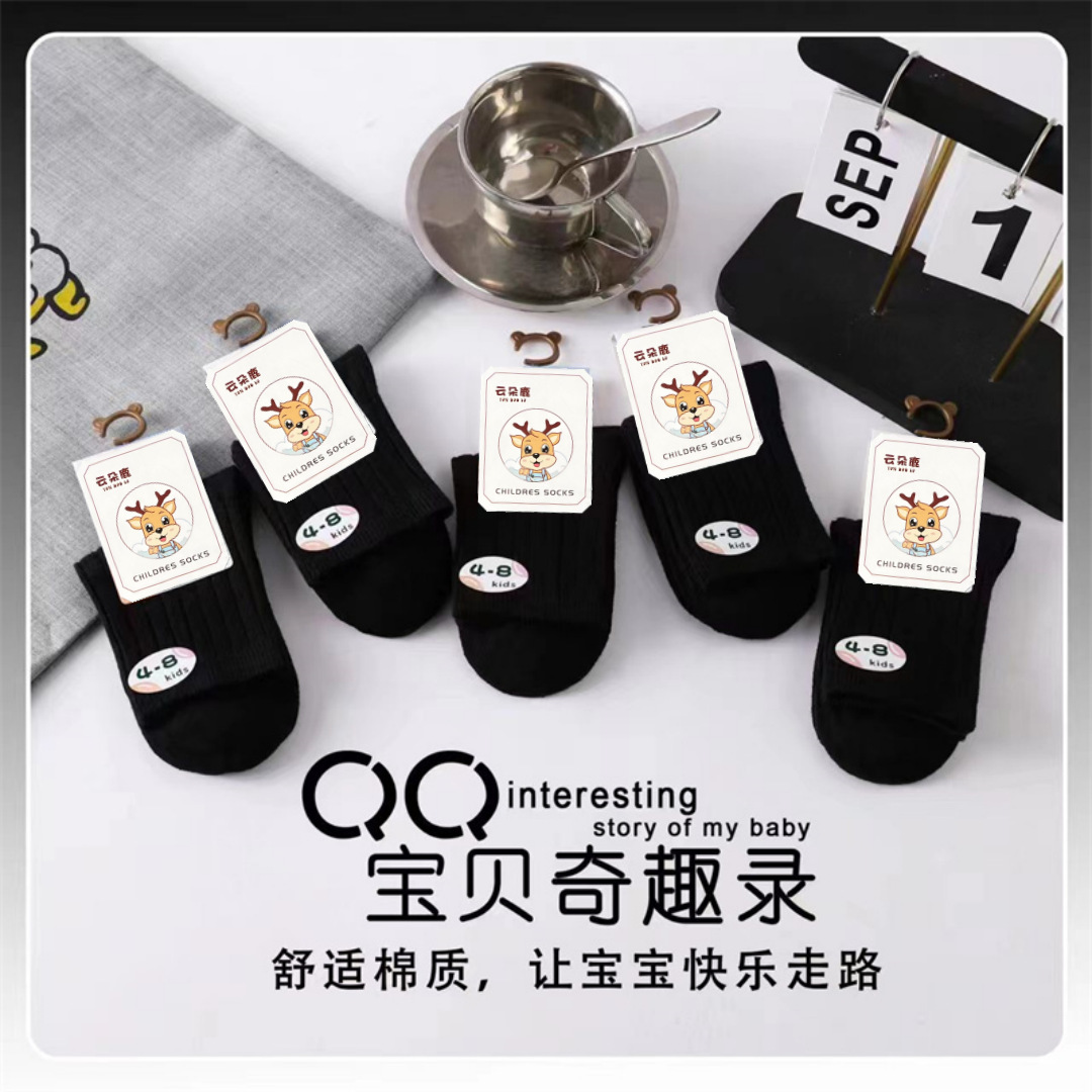 구름 사슴 양말 단색 어린이 더블 니트 통기성 비 냄새 나는 발 땀 흡수성 소년 소녀 중간 길이의 학생 양말 가을스토어 가기