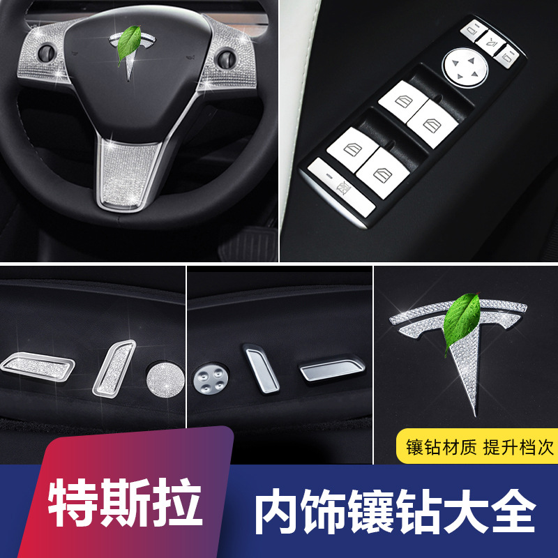 테슬라 Model3 스티어링 휠 크리스탈 다이아몬드 전면 및 후면 자동차 로고 모조 다이아몬드 수정 액세서리에 적용스토어 가기