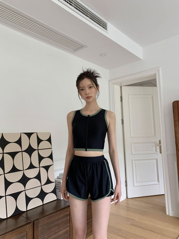 한국 새로운 분할 수영복 여성 학생 작은 가슴 스포츠 보수적 인 복서 슬림 배꼽 취재 온천 수영복스토어 가기