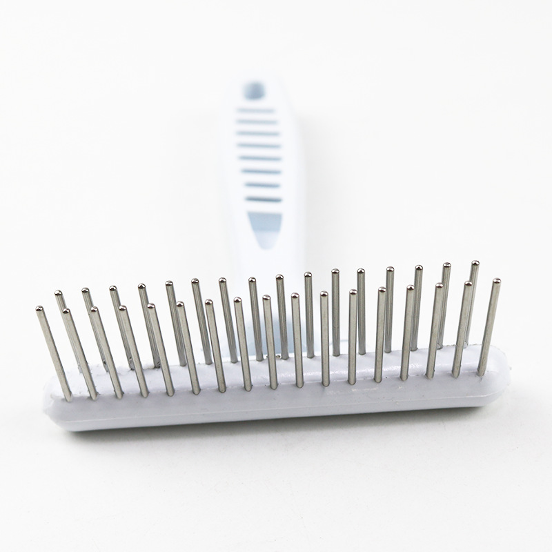 재고 도매 흰색 플라스틱 애완 동물 빗 더블 행 개 오픈 매듭 빗 개 갈퀴 빗 고양이 바늘 빗 머리 제거 빗스토어 가기
