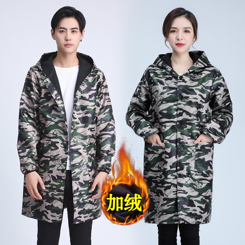 남성과 여성의 따뜻한 긴팔 앞치마 기모 두껍게 커버 작업 주방 공장 도매 가정용 내마모성 방수 위장스토어 가기