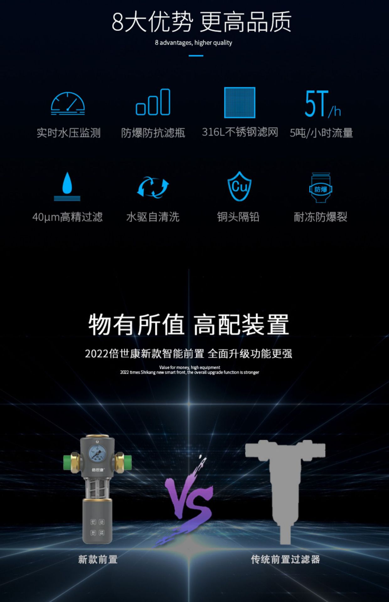 비시캉 전자동 역세척 가정용 대형 유량 사전 필터 수돗물 프리 코어 변화 정수기