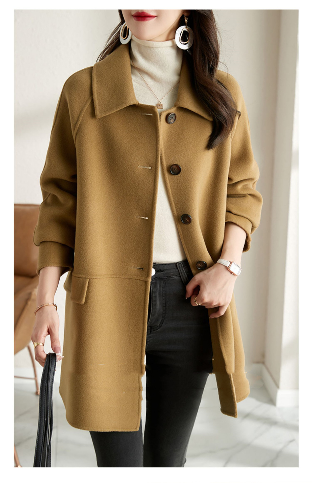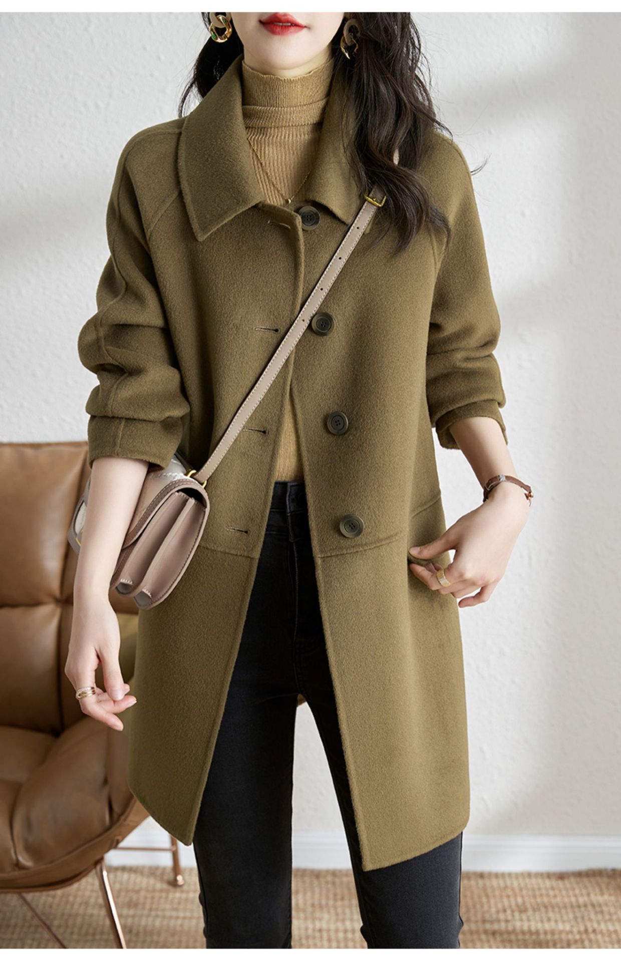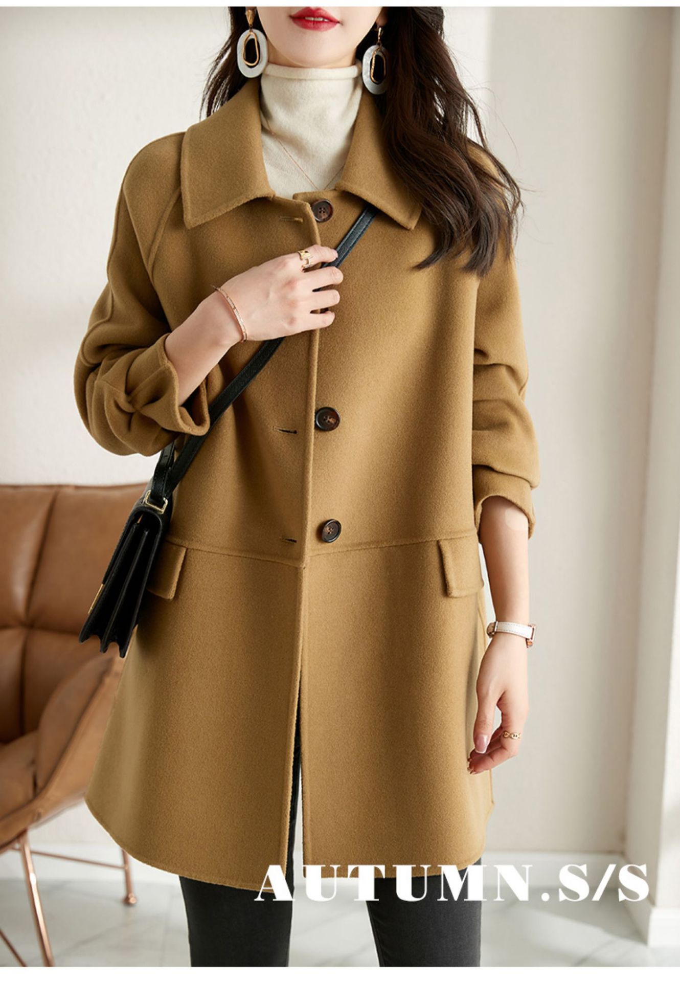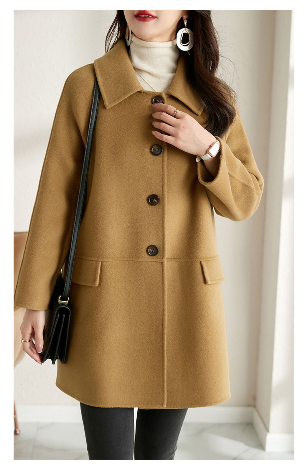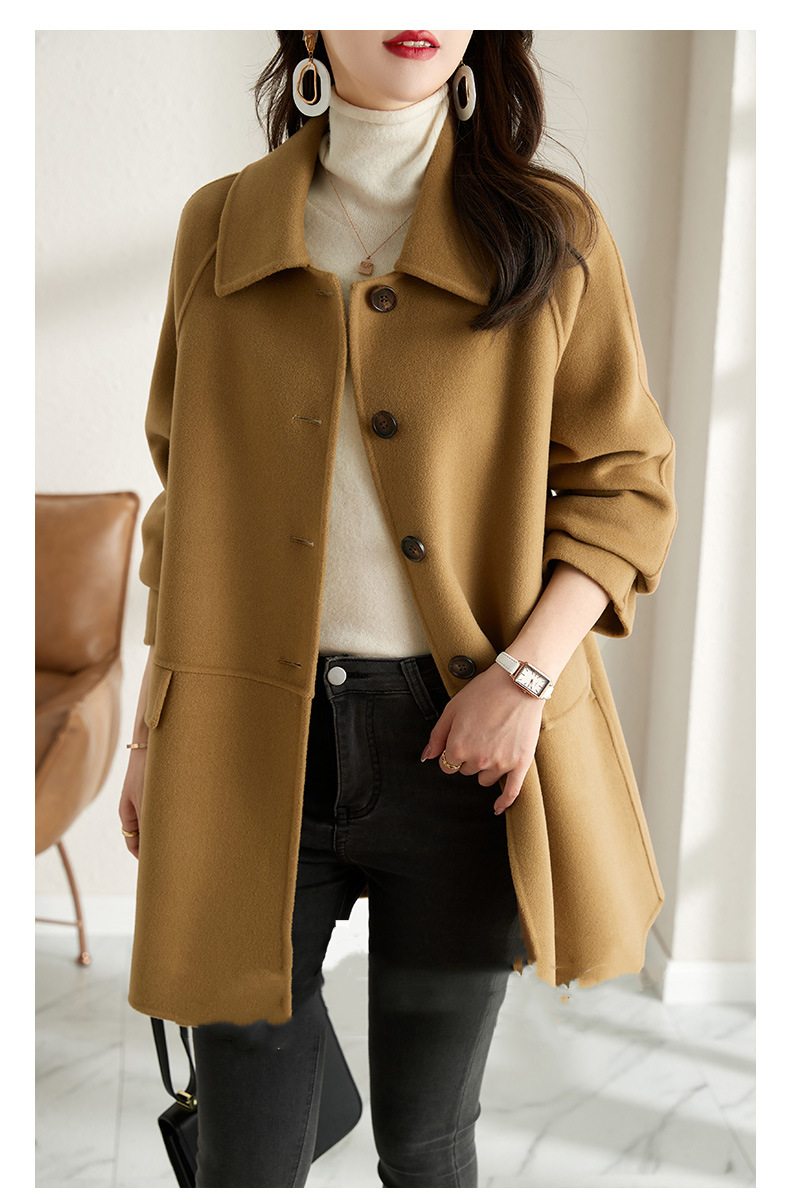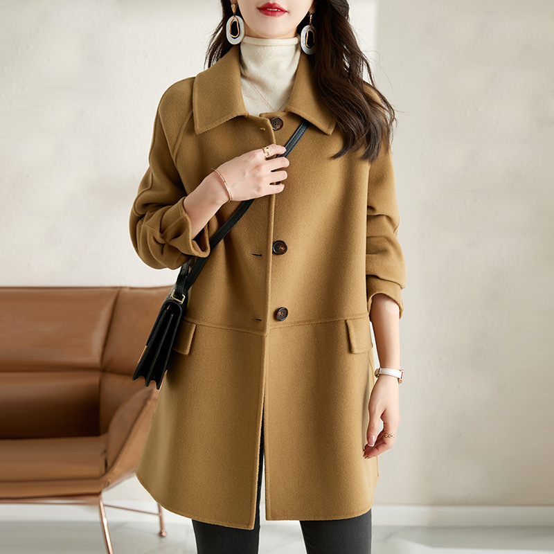 2025년 가을 겨울 신상 모직 코트 여성용 고급 패션 한국 스타일 카멜 컬러 우아한 모직 코트 캐주얼 다용도스토어 가기
