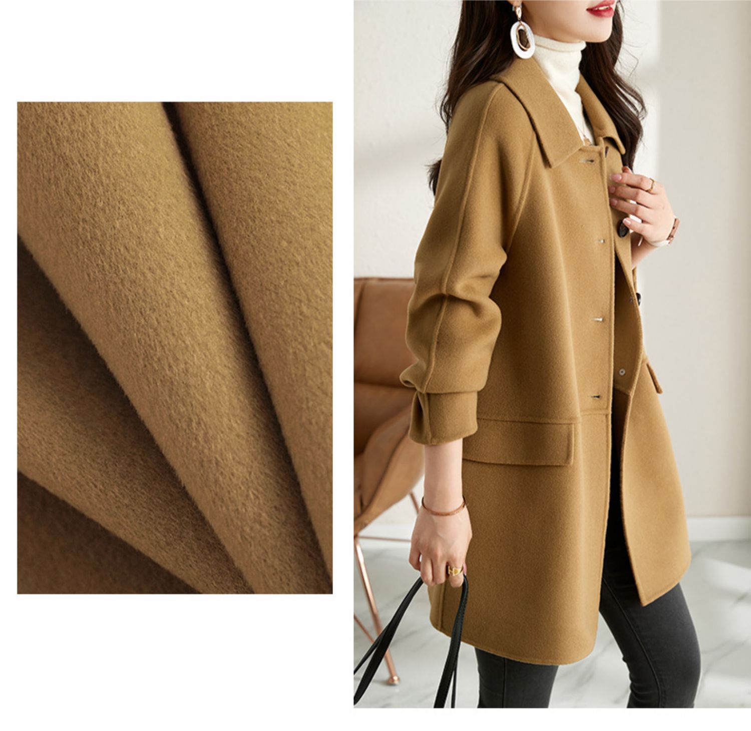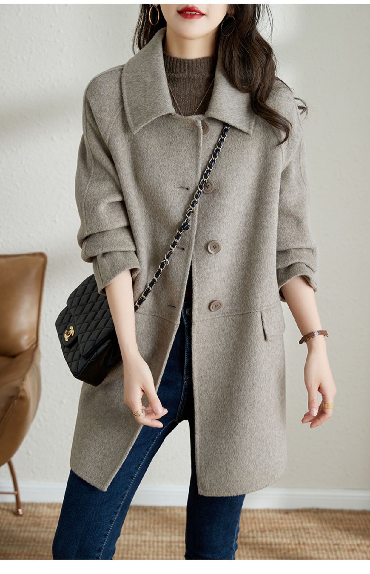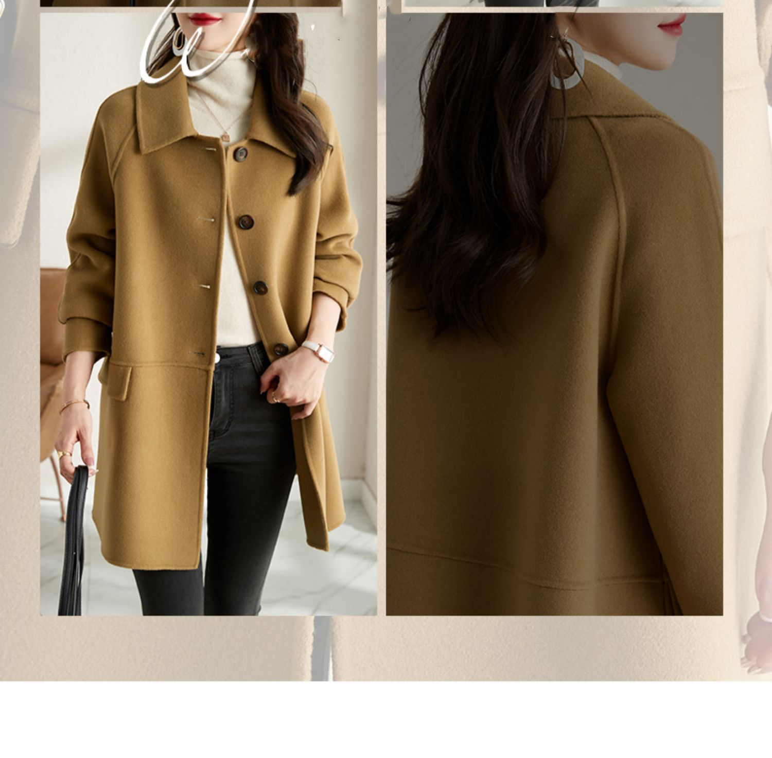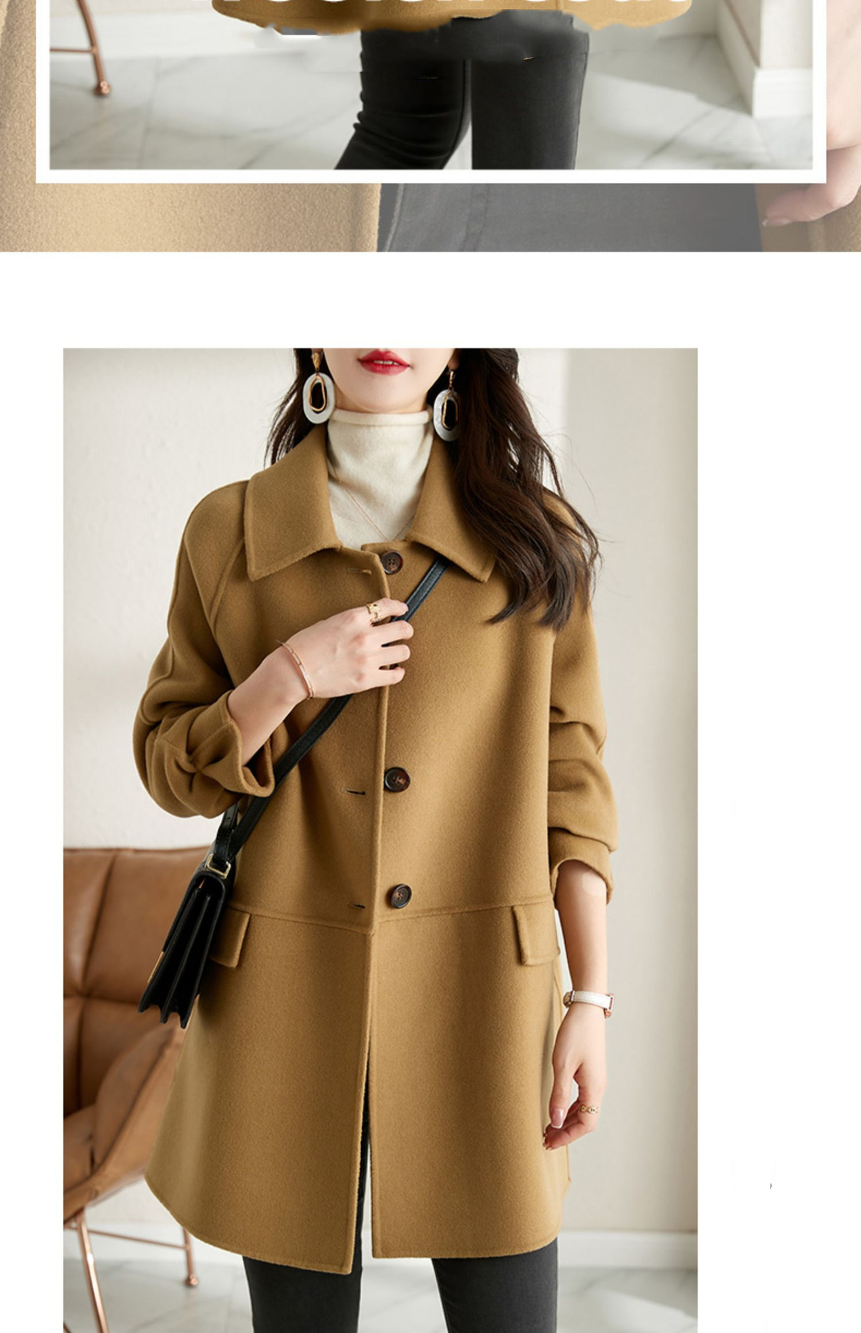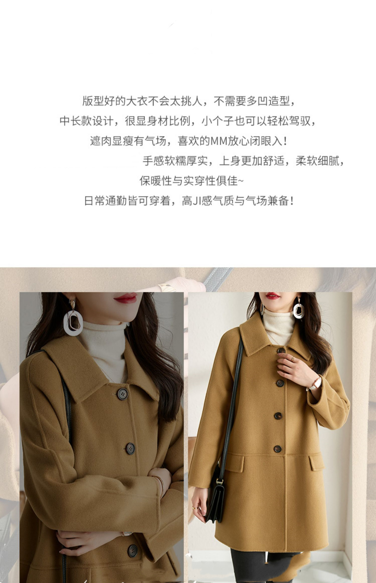 2025년 가을 겨울 신상 모직 코트 여성용 고급 패션 한국 스타일 카멜 컬러 우아한 모직 코트 캐주얼 다용도스토어 가기