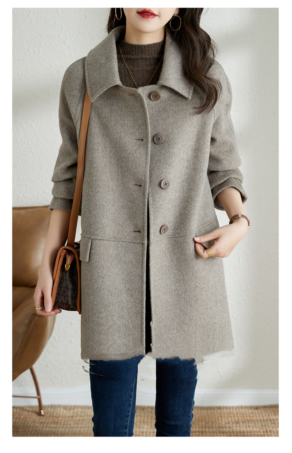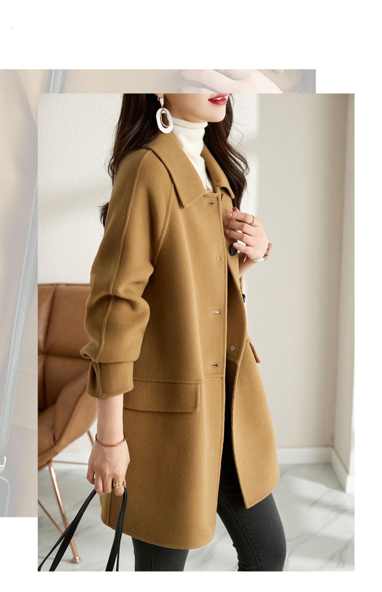 2025년 가을 겨울 신상 모직 코트 여성용 고급 패션 한국 스타일 카멜 컬러 우아한 모직 코트 캐주얼 다용도